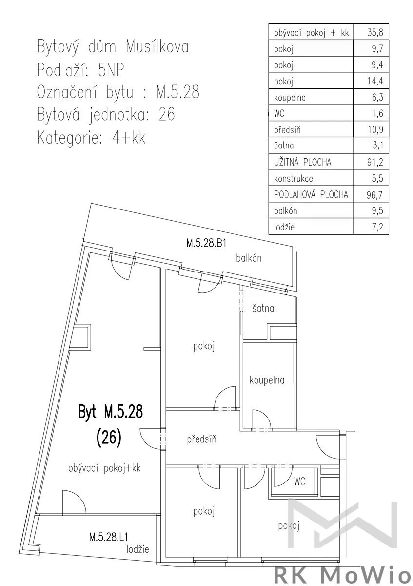 Na pronájem nabízíme částečně zařízený byt o dispozici 4+kk o podlahové ploše 91,2 m² s balkónem i lodžií a dvěma parkovacími stáními, situovaný ve 4. patře (5 nadzemní podlaží) v ulici Tůmova na Praze 5 - Košíře. Půdorys bytové jednotky disponuje předsíní, obývacím pokojem s kuchyňským koutem, který má vstup na lodžii i balkón, hlavní ložnicí se vstupem na balkón a šatnou a dvěmi dalšími ložnicemi, 1 koupelnou a samostatnou toaletou. Vybavení bytu: kuchyňská linka (včetně lednice s mrazákem, sklokeramické varné desky, digestoře, myčky a elektrické trouby), vestavěné skříně, příprava pračku/ sušičku a pro vysokorychlostní internet, dřevěné podlahy a dlažba. Součástí pronájmu je 1 parkovací stání a sklep. Možnost pronajmout druhé parkovací stání za extra příplatek 3.000,-Kč/ měsíc. Výhodou této lokality je klidné rezidenční prostředí s dostatkem zeleně, v těsné blízkosti parku Ladronka a oblíbeného parku Klamovka, ideálních pro procházky, sportovní aktivity či odpočinek. V okolí je veškerá občanská vybavenost - restaurace (Na Hromádkové, U Bílého lva), kavárny (Café Záhorský, Kava Bar), supermarkety (Albert, Billa) a menší lokální obchody, zdravotnická zařízení, školy a školky. Výborná dopravní dostupnost - zastávky tramvaje a autobusu v pěší vzdálenosti, rychlé spojení do centra města, i snadný dojezd na Pražský okruh a Letiště Václava Havla. Měsíční nájemné činí 39.000,- Kč/měsíc (včetně 1 parkovacího stání a sklepa), poplatky 8.287,- Kč/měsíc a elektřina v bytě. Požadovaná jistota (kauce) ve výši dvou měsíčních nájmů. Minimální délka pronájmu 1 rok, ubytování formou Airbnb či spolubydlení nelze realizovat. Dle vyhlášky 78/2013 Sb. uvádíme třídu energetické náročnosti G.