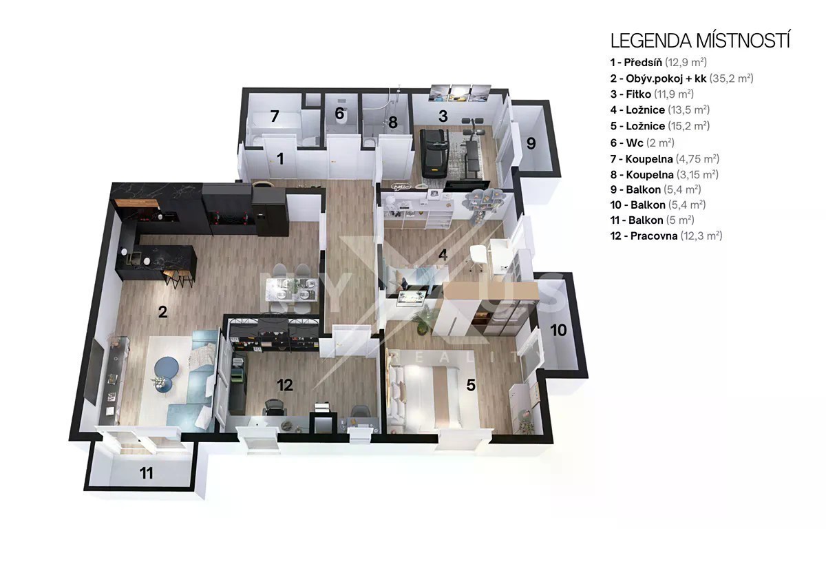 Představte si, že se každý den probouzíte v bytě, který vám nabídne prostor, světlo a moderní design v kombinaci. To vše nabízí tato nemovitost v Rezidenci Tuchoměřické zahrady, novostavbě z roku 2022, která spojuje funkčnost, estetiku a kvalitní zpracování do jednoho harmonického celku. Prostorné a moderní bydlení - komfort, styl a to na dosah hlavního města. Díky Starbucksu, který je 5 minut pěšky se opravdu budete cítit jako v Praze. Tento výjimečný byt 5+kk s podlahovou plochou 119,6 m² se nachází v posledním 4. patře a díky své dispozici nabízí maximální soukromí. K bytu náleží tři balkony, ideální pro ranní kávu, večerní sklenku vína nebo pěstování bylinek. Na stejném patře, před bytem, je k dispozici i praktická komora, kam snadno uložíte sezónní věci či sportovní vybavení. Pokud by Vám ani to nestačilo, tak je v domě ještě k dispozici společná kolárna/kočárkárna. Dominantou bytu je velkorysý obývací pokoj s kuchyní o rozloze více než 35 m², který je doslova srdcem celého domova. Díky propojení s jídelní částí a přímému vstupu na balkon zde vzniká dokonalé místo pro rodinná setkání i posezení s přáteli. Interiér je laděn do moderního stylu s důrazem na kvalitu provedení. Kuchyňská linka je pečlivě navržena tak, aby vyhovovala každému, kdo rád vaří. Dvě koupelny přinášejí komfort pro všechny členy domácnosti a klimatizace ve třech pokojích se postará o příjemnou teplotu i v horkých letních dnech. Součástí prodeje jsou dvě venkovní parkovací stání, což je v dnešní době neocenitelné. Celý areál je uzavřený a bezpečný. Pro chvíle odpočinku je zde k dispozici společný grilovací koutek, kde můžete trávit čas s rodinou nebo sousedy. Lokalita Tuchoměřic je stále více vyhledávaná - nabízí poklidné bydlení v blízkosti přírody, ale zároveň perfektní dostupnost do Prahy. Pravidelné autobusové spoje vás během pár minut zavezou na metro Bořislavka nebo s přestupem na Zličín, ať už míříte do práce, školy či za zábavou. Díky energetické náročnosti třídy B je provoz bytu úsporný, a tím pádem i dlouhodobě výhodný. Ať už hledáte nové rodinné bydlení nebo prostorný byt s dostatkem místa pro práci z domova, tato nemovitost splní vaše představy. Byt, který má vše - prostor, kvalitu, pohodlí i skvělou polohu. Přijďte se přesvědčit sami.