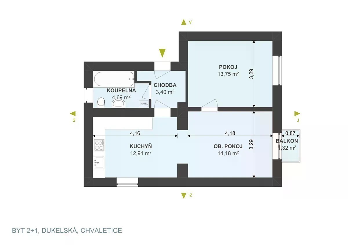 REZERVACE! Nabízíme Vám ke koupi příjemný byt o dispozici 2+1 a výměře 49 m² (bez započtení balkonu a sklepních kójí), který se nachází ve městě Chvaletice, v ulici Dukelská. Byt je situován ve 3. nadzemním podlaží cihlového domu bez výtahu a je v osobním vlastnictví. Součástí bytu je balkon o velikosti 1,4 m². Byt je orientován na tři světové strany - koupelna směřuje na sever, obývací pokoj a ložnice na jih a kuchyň na západ. V roce 2015 prošel byt kompletní rekonstrukcí, při níž došlo k výměně veškerých rozvodů elektřiny, vody a odpadů, k rekonstrukci koupelny a kuchyně a k úpravám podlah. Dispozice: vstupní chodba, kuchyň, dva pokoje, koupelna s vanou a toaletou. Na podlahách se nachází plovoucí podlaha v kuchyni a chodbě, vinyl v jednom pokoji, koberec ve druhém pokoji a dlažba v koupelně. Vytápění bytu i ohřev vody zajišťuje plynový kotel. Součástí vybavení bytu, které zůstává novému majiteli, je kuchyňská linka s vestavěnou myčkou, kombinovaný sporák a vestavěná skříň na chodbě. Ostatní zařízení je možné ponechat po dohodě s majitelem. K bytu náleží dvě samostatné sklepní kóje o celkové výměře 4,4 m² a dále jedna společná sklepní místnost o velikosti 5,5 m², která je určena pro tři byty. K dispozici jsou také společné prostory jako kočárkárna a kolárna. V domě je zavedena společná TV anténa. Bytový dům prošel částečnou revitalizací. Bylo provedeno zateplení střechy a sklepních prostor, výměna stoupacích rozvodů vody, plynu a odpadů, instalace nových rozvodů elektřiny ve společných částech domu a oprava balkonů. Do budoucna je plánována rekonstrukce fasády domu. Parkování je bezproblémové přímo před domem nebo v jeho okolí. Lokalita nabízí velmi dobrou občanskou vybavenost - v docházkové vzdálenosti se nacházejí obchody, restaurace, pošta, lékař, základní i mateřská škola. Chvaletice mají rovněž velmi dobrou dopravní obslužnost - k dispozici je autobusové i vlakové spojení a samozřejmě i dostupnost autem. Byt je vhodný pro zájemce, kteří hledají klidné a pohodlné bydlení bez nutnosti dalších investic, stejně tak jako pro investory, kteří hledají nemovitost s potenciálem dalšího pronájmu. K nastěhování je byt připraven od 11. ledna 2026, případně dle dohody s majitelem i dříve. V případě zájmu Vám rádi pomůžeme zajistit vhodné financování podle Vašich možností a potřeb. Těšíme se na setkání při prohlídce.