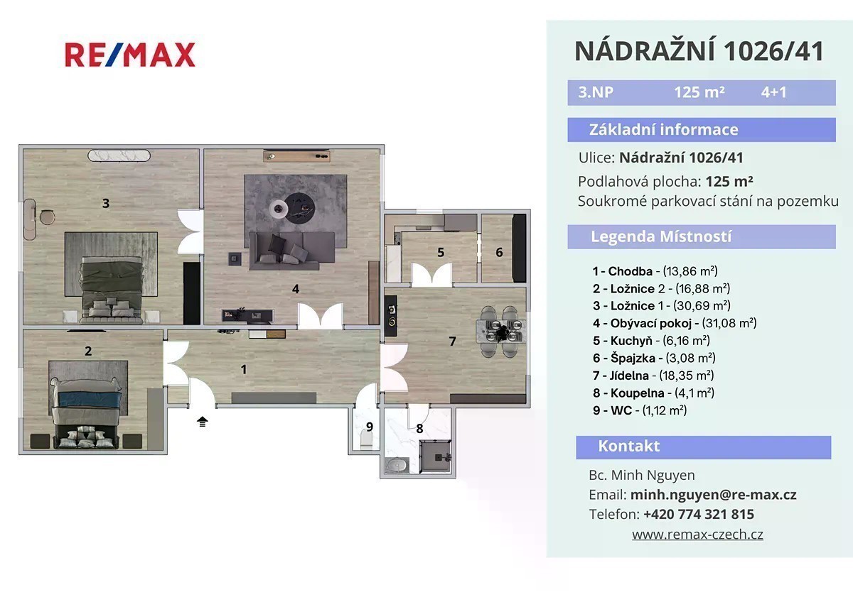 Nabízíme k prodeji prostorný byt o dispozici 4+1 a výměře 125 m², který se nachází v 1. patře (2. NP) historického domu v centru Ostravy na ulici Nádražní. Byt prošel před rokem kompletní rekonstrukcí. Vysoké stropy a velké místnosti dodávají bytu vzdušnost a zachovávají charakter historické zástavby. K bytu náleží i vlastní parkovací stání ve dvoře. Parkování je tedy bezstarostné - díky vlastnímu vyhrazenému místu ve dvoře máte jistotu, že vždy pohodlně zaparkujete. Hlavní výhody bytu: - velkometrážní dispozice 4+1 (125 m²) ideální pro rodinu i náročné klienty - vysoké stropy a prostorné pokoje s atmosférou staré zástavby - před rokem kompletně zrekonstruovaný - bez dalších větších investic - vlastní vyhrazené parkovací místo ve dvoře - vždy pohodlné parkování bez stresu - 1/4 půdy k užívání - prostorný sklep v plně podsklepeném domě Bydlet tady znamená mít město na dlani - přímo před domem nastoupíte na tramvaj, za rohem si dáte kávu v oblíbené kavárně, posedíte v restauraci nebo vyřídíte nákup v obchodech a pekárnách. Na dosah máte Janáčkovu konzervatoř, školy všech stupňů i univerzity, lékárny i OC Nová Karolina. Pár minut chůze vás dělí od Komenského sadů, Masarykova náměstí a divadel - vše, co potřebujete, máte v bezprostřední blízkosti. Pokud řešíte financování, nemusíte se obávat - ve spolupráci s naší zkušenou hypoteční poradkyní Vám zajistíme řešení na míru. Pomůžeme Vám vybrat nejvýhodnější variantu, aby byl celý proces co nejjednodušší a bez starostí. Máte zájem o prohlídku? Zavolejte nám ještě dnes a domluvte si termín. Přijďte se podívat osobně - tenhle byt Vás svou atmosférou okamžitě nadchne.