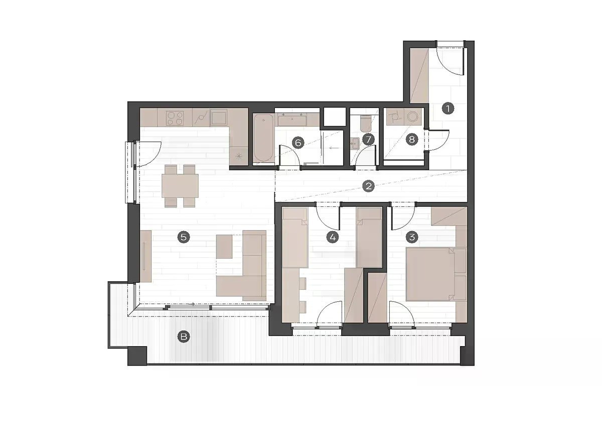 Atraktivní byt 3+kk na ploše 84m2 + balkon 17m2, s prostorným sklepem a garážovým stáním, je součástí moderní novostavby projektu Viladům Záběhlická v Praze 10, který je ve výstavbě. Jedná se o zajímavou příležitost pořízení si neobyčejného bytu s okouzlujícím výhledem do zeleně. Uspořádání bytu je přehledné, promyšleně funkční a praktické. Obývací pokoj s místem pro stolování a zálivem pro kuchyňský kout je rohový s velkorysým prosklením. Ložnice i dětský pokoj jsou tvarově optimální pro snadné zařízení nábytkem. Ze všech obytných místností je výstup na velký balkon. Byt má koupelnu s vanou i sprchovým koutem a dvojumyvadlem. Toaleta je samostatná s umývátkem. Místo a napojení pro pračku a sušičku je v komoře, umístěné v rámci půdorysu bytu. Velkoryse je navržený standard provedení, zahrnující kvalitní dřevěné podlahy, velkoformátové obklady a dlažby, designové zařizovací předměty, rekuperaci, přípravu pro klimatizaci a venkovní žaluzie. V ceně bytu je zahrnutý sklep i garážové stání v podzemním podlaží domu. Rádi Vám představíme i další volné byty v projektu.