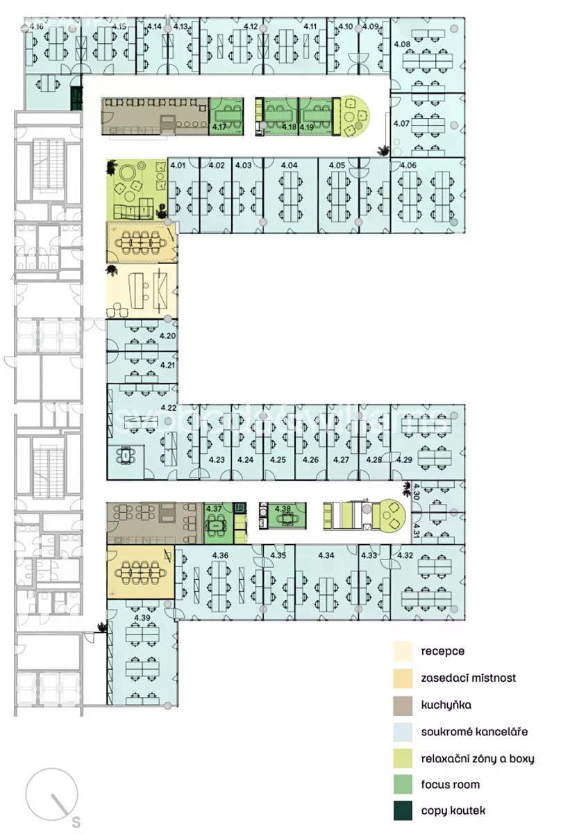 Plně vybavené sdílené kanceláře již od 9 m2 s flexibilní dobou nájmu v business lokalitě přímo u stanice metra Stodůlky. Cena za osobu v soukromé kanceláři od 6 400 Kč / měsíc vč. služeb a vybavení. Plně vybavená soukromá kancelář pro 10 osob o čisté kancelářské ploše 37,50 m2. Celková plocha jednotky vč. sdílené plochy činí 65,95 m2. West Flexi Offices jsou stylové, plně vybavené sdílené kanceláře, které nabízí flexibilní dobu pronájmu. Nezáleží na tom, jestli sháníte prostor na hodinu, den, měsíc nebo několik let, West Flexi Offices nabízí řešení pro každého. Projekt nabízí samostatné kanceláře (od 9 m2 do 112 m2), prostory pro coworking, pop-up office, zařízené zasedací místnosti a focus rooms pro kratší jednání či telefonní hovory. Lokalita: Prostory West Flexi Offices se nacházejí v moderním polyfunkčním komplexu, který naleznete v Západním městě, přímo u stanice metra Stodůlky (trasa B). Skvělé spojení s centrem města zajišťuje jak MHD (15 minut), tak napojení na Pražský okruh, díky němuž jsou kanceláře snadno dostupné i z dálnice D5 a z letiště Václava Havla. Přímo v areálu se nachází množství příjemných restaurací, bister, kaváren a venkovní posilovna, kousek to je také do zeleně rozsáhlého Centrálního parku. V docházkové vzdálenosti se nachází dvojice nákupních center: Metropole Zličín a Homepark Zličín. Vybavení a služby West Flexi Offices: Podpora denní recepce na patře (od 8:30 do 18:30 hod.) Příjem pošty a balíků 39 vybavených kanceláří od 9 m2 do 112 m2 Plně vybavené zasedací místnosti (k dispozici nejen nájemcům kanceláří) Focus rooms Pop-up office Coworking Lounge a relax zóny pro klienty Zařízené kuchyňky Multifunkční tiskárny Vysokorychlostní Wi-Fi se zabezpečením Fortinet Sprcha na patře IT podpora a právní poradenství Vybavení a standard budovy Patria West Offices (City West B1): Moderní budova kategorie “A” Nonstop recepce při vstupu do budovy 24h bezpečnostní služba Parkování v podzemních garážích Nabíjecí stanice Přístup na magnetické karty Zdvojené podlahy Otevíratelná okna Venkovní žaluzie Skladové prostory Fitness centrum Form Factory Venkovní posilovna Parkování jízdních kol Ceník West Flexi Offices včetně služeb: Soukromé kanceláře: Pracovní místo. od 6 400 Kč/měsíc vč. služeb a vybavení Coworking: Hot desk. 300 Kč/den Hot desk 24/7. 4 500 Kč/měsíc Zasedací místnosti: Pronájem od 150 Kč/hod. K nastěhování ihned. Nájemné a poplatky jsou uvedeny bez DPH. Nájemce neplatí provizi.