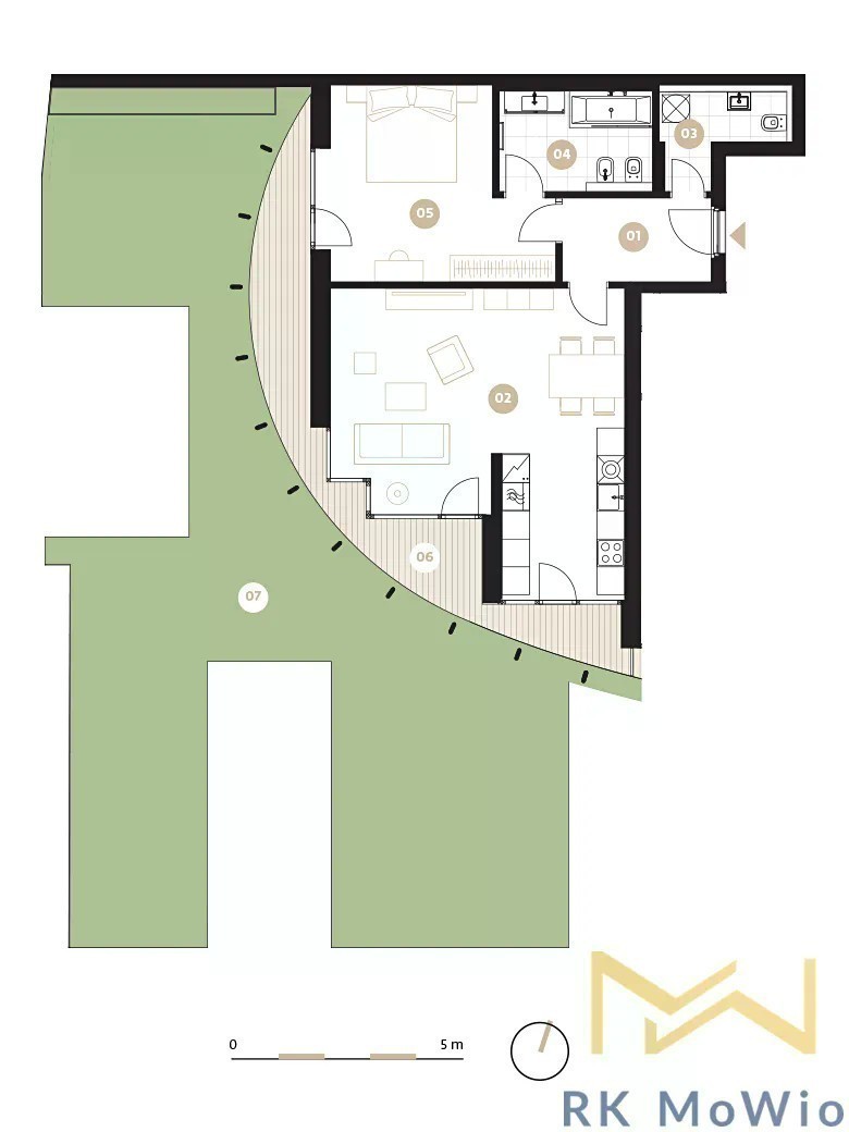 Nabízíme na pronájem kompletně vybavený byt č. A.201, 2+kk s podlahovou plochou 70,93 m2 s terasou o výměře 19,48 m2 a předzahrádkou (89,67 m2), situovaný ve 2. patře (3. nadzemní podlaží) v rezidenci Ellipsis s výtahem v ulici Holečkova na Praze 5 - Smíchov. Půdorys bytové jednotky tvoří vstupní předsíň, světlý obývací pokoj se vstupem na terasu a zahradu, kuchyňský kout a jídelní prostor, 1 ložnice s vlastní koupelnou (s vanou, umyvadlem, bidetem, toaletou) a samostatná toaleta/prádelna. Vybavení bytu: kuchyňská linka včetně lednice s mrazákem, sklokeramické varné desky, myčky, elektrické a mikrovlnné trouby; vestavěné skříně, pračka a sušička, příprava pro vysokorychlostní internet, dřevěné podlahy a dlažba, bezpečnostní dveře a skla, alarm. V nájemném je zahrnut úklid 2x měsíčně. Možnost pronájmu garážového stání za 200,- EUR/měsíc + 21 % DPH = 242,- EUR/měsíc. Foto je ilustrativní. Exkluzivně pro rezidenty budovy Ellipsis je k dispozici moderní wellness & spa komplex o rozloze 410 čtverečních metrů, bazén s délkou 15 metrů, vířivka, sauna s ochlazovacím bazénem. Poplatek za wellness ve výši 100,- EUR/měsíc. V prostoru bývalého viničního svahu je postaven soukromý park čistě pro pohodlí nájemců budovy Ellipsis. Recepce nabízí služby "on demand", je připravena pomoci vyřešit požadavky obyvatelů moderního rezidenčního projektu. Veřejné prostory jsou osazeny CCTV kamerami, vstup a vjezd je řízen čipovými kartami, Měsíční nájemné činí 2.200,- EUR/měsíc + 12% = 2.464,- EUR/měsíc včetně poplatků. Požadovaná jistota (kauce) jsou dva měsíční nájmy. Minimální délka pronájmu je 1 rok, ubytování formou Airbnb či spolubydlení není možné realizovat. Třída energetické náročnosti budovy je dle vyhlášky 78/2013 Sb. klasifikována B.