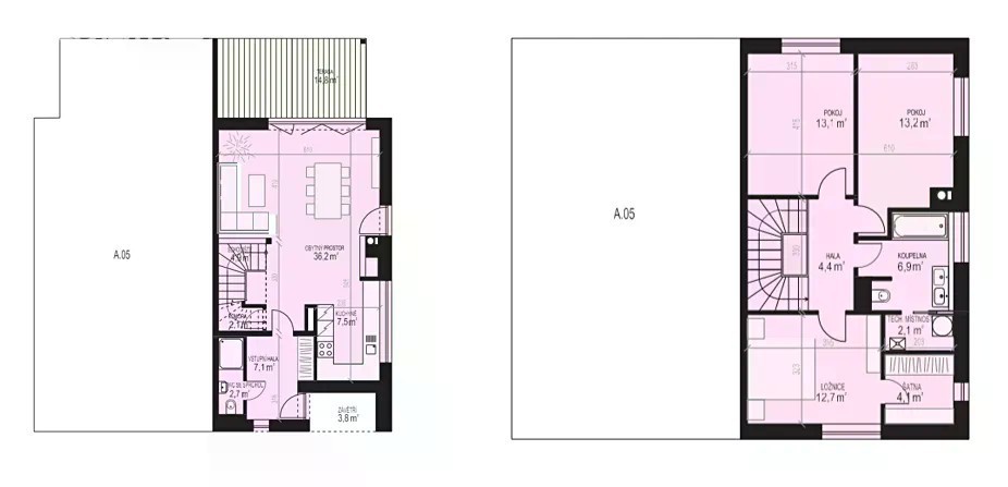 Prodej moderní novostavby 4+KK v Satalicích - Dvojdům se zahradou a parkováním Hledáte rodinný dům v Praze, který vám nabídne klid, dostatek prostoru, vlastní zahradu a zároveň skvělou dostupnost do centra? Právě pro vás je určena tato novostavba rodinného domu 4+KK v oblíbené části Praha - Satalice. Dům je součástí moderního dvojdomu, postavený s důrazem na úspornost a komfort. Je napojený na obecní vodovod i kanalizaci, vytápění zajišťuje tepelné čerpadlo, které garantuje nízké provozní náklady a pohodlný chod domácnosti. Dispozice domu (4+KK) Přízemí Dominantou přízemí je prostorný obývací pokoj (36,26 m²) propojený s kuchyní (7,54 m²), který je ideálním místem pro rodinný život i setkávání s přáteli. Z obývací části je vstup na terasu o velikosti 16,92 m² a dále na zahradu, kde si můžete užívat klidné chvíle nebo vybudovat prostor pro děti. V přízemí se dále nachází vstupní hala (7,10 m²), komora (2,17 m²) pro uskladnění věcí, praktické WC se sprchou (2,75 m²) a schodiště (4,90 m²) vedoucí do horního patra. Patro V patře se nachází dvě samostatné ložnice (13,18 m² a 13,23 m²), dále hlavní ložnice (12,78 m²) se šatnou (4,17 m²), která poskytuje dostatek úložného prostoru. Komfort rodiny zajišťuje i prostorná koupelna s vanou (6,97 m²) a technická místnost (2,18 m²). Parametry domu Celková plocha pozemku: 439 m² Zastavěná plocha: 117 m² Součástí je zahrada s dostatkem soukromí Vlastní parkovací stání pro 2 vozy přímo u domu Výhody a benefity Moderní a úsporný dům - tepelné čerpadlo, kvalitní stavební materiály, nízké měsíční náklady Výborná dopravní dostupnost - do centra Prahy se dostanete rychle autem i MHD, v blízkosti je také vlakové spojení Kompletní občanská vybavenost - mateřská i základní škola, dětská hřiště, sportoviště, obchody i restaurace Příroda na dosah - okolí Satalic nabízí mnoho možností k procházkám a sportovnímu vyžití Ihned k nastěhování - dům je prázdný, nevybavený a připravený pro nového majitele, který si jej může zařídit podle vlastního vkusu Tento dům v sobě spojuje výhody moderní novostavby a bydlení v klidné městské části Prahy, která má blízko jak k přírodě, tak k centru města. Je to ideální volba pro rodiny s dětmi i pro ty, kdo hledají kombinaci pohodlí a výborné dostupnosti. Prodej bez RK!