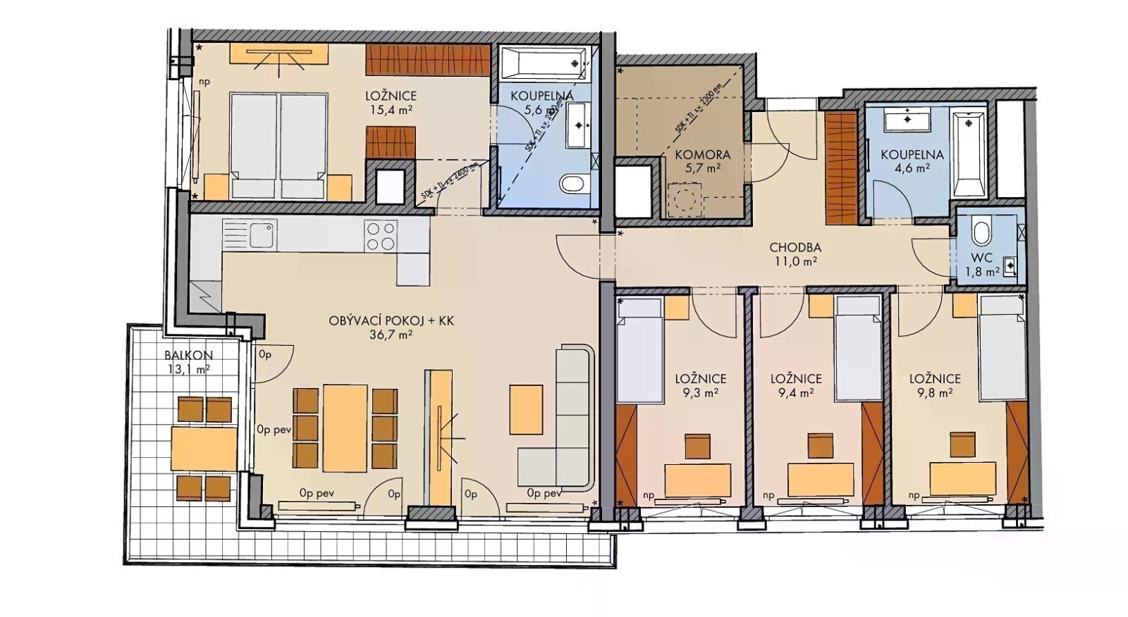 Nabízíme k prodeji byt o dispozici 5+kk v družstevním vlastnictví v developerském projektu Nový Opatov dům F2 od společnosti Finep.Projekt Nový Opatov se nachází přímo u stanice metra. V rámci projektu bude vybudováno nové centrum Opatova včetně potřebných služeb, vodních prvků a míst k relaxaci. Užitná plocha bytu je 118,3 m2 + balkon 13,1 m2. Byt se nachází v pátém patře domu F2 a má orientaci západ a sever. Projekt Nový Opatov nabízí vynikající dostupností, pouze jednu minutu chůze od stanice metra V blízkosti je kompletní občanská vybavenost, jako: poliklinika, školy, školky a obchody a supermarkety Byt bude dokončen koncem roku 2028. Klientské změny jsou stále možné. Skvělá investiční příležitost. Neřešíte prokazování příjmu jako u hypotéky, jelikož se jedná o družstevní byt, cenu splácíte formou nájmu. Na byt bude poskytnuta záruka 3 roky. Byt nelze v průběhu výstavby převádět do osobního vlastnictví. Celková cena je 17 500 000,- Kč Částka za převod členských práv a povinností která se hradí nyní při převodu členských práv a povinností 4 709 648,- Kč K bytu se váže anuita ve výši 12 790 352,- Kč Anuitní splátky jsou rozvrženy na 35 let a začínají platit až po předání bytové jednotky. měsíční splátka anuity na byt je 65 092,- Kč K bytu je možné přikoupit dvě garážové stání. Úroková sazba pro první 3-leté období fixované sazby činí 4,99 % p.a. (maximální) Pakliže dojde ke snížení sazeb dojde i ke snížení úrokové sazby na první období fixace. V případě dalších dotazů nás neváhejte kontaktovat.
