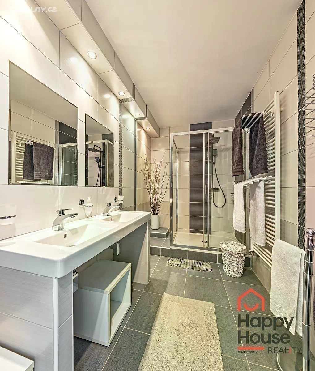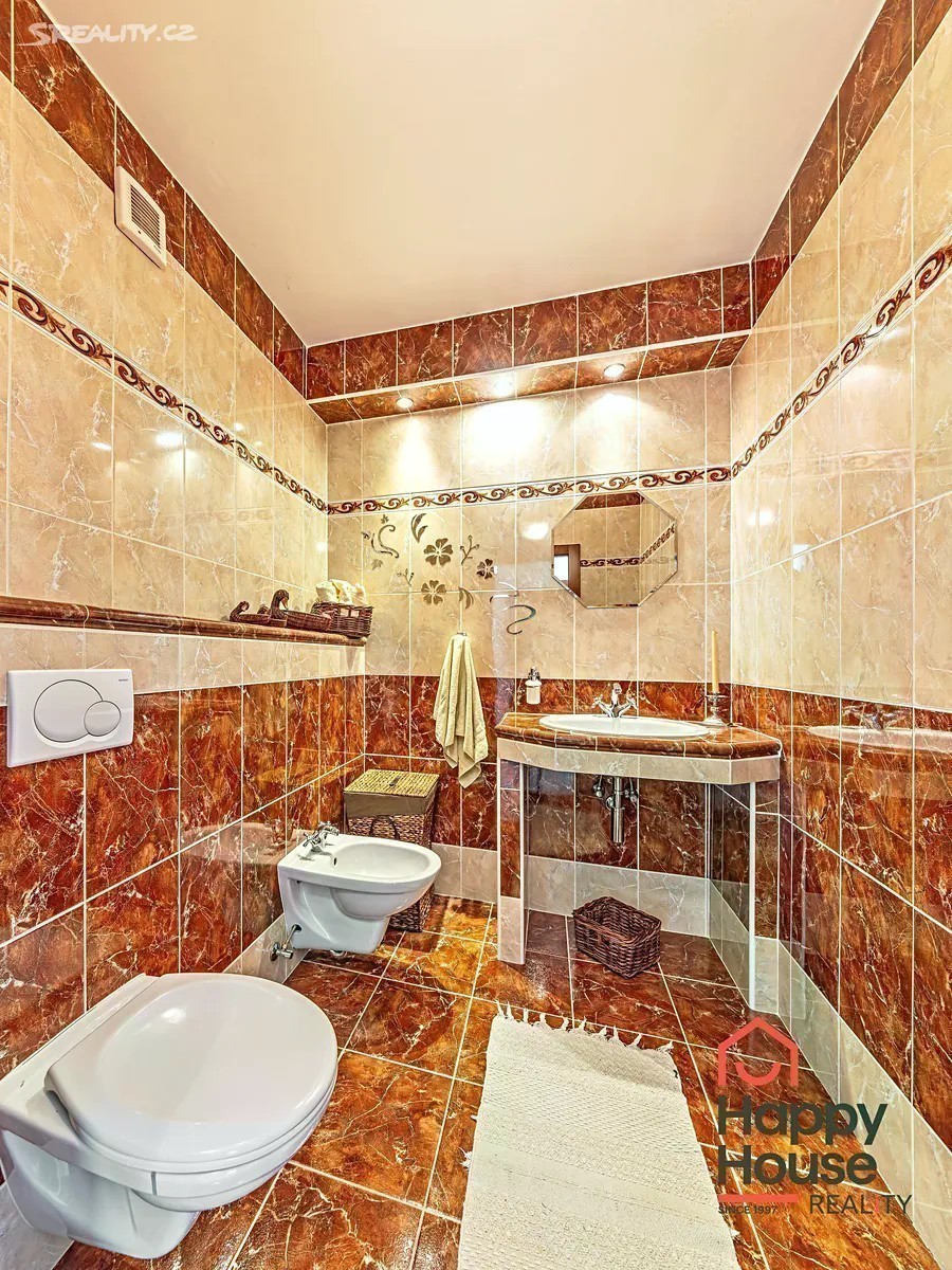 Nabízíme k pronájmu prostorný a plně zařízený rodinný dům 7+1 se zahradou v klidné slepé ulici v rezidenční čtvrti Prahy 5 - Stodůlky. Dům je rozdělen do více podlaží a nabízí komfortní bydlení pro rodinu i vícegenerační využití. V přízemí se nachází pokoj s flexibilním využitím (pracovna, pokoj pro hosty), sauna, toaleta, technická místnost a prádelna s pračkou a sušičkou. V obývacím pokoji v přízemí jsou k dispozici kachlová krbová kamna. V 1. patře se nachází obývací pokoj s krbem, klimatizací a vstupem na terasu, kuchyně propojená s jídelním koutem, dvě ložnice, šatna, koupelna se sprchovým koutem a toaleta s bidetem. Z ložnice je přístup na balkon. Kuchyně je kompletně vybavená vestavěnými spotřebiči (indukční deska, elektrická trouba, lednice s mrazákem, myčka, mikrovlnná trouba). Ve 2. patře se nachází dvě ložnice, dvě koupelny (rohová vana, toaleta) a další obývací pokoj s malou kuchyňskou linkou. Tento prostor lze využít jako samostatnou jednotku. V podkroví jsou palubkové stropy. Dům dále disponuje samostatným studiem v přízemí (1 pokoj, kuchyňka, koupelna se sprchovým koutem) se samostatným vchodem. K domu patří velká zahrada se zastřešenou pergolou 8 × 8 m s napojením na vodu, elektřinu a odpad. Pozemek je mírně svažitý. K dispozici jsou dvě parkovací místa v garáži a další stání na pozemku před domem. Na podlahách jsou plovoucí podlahy a dlažba, ve všech oknech žaluzie, dům je vybaven vestavěnými skříněmi a domácí technikou. Vytápění je řešeno plynovým kotlem v domě. V okolí je veškerá občanská vybavenost - obchody, školy, školky, sportoviště i služby. Lokalita nabízí klidné rezidenční bydlení s množstvím zeleně a zároveň rychlou dostupnost centra. Stanice metra Anděl je vzdálena 15 minut tramvají, do centra se dostanete do 20 minut. Cesta autem na letiště trvá zhruba čtvrthodinu. V blízkosti se nachází přírodní park Košíře-Motol, Prokopské údolí a rozlehlé plochy zeleně vhodné k procházkám či cyklistice. Voda a odpady mají zálohy 2 500 Kč měsíčně, elektřina a plyn se přepisují na nájemce. Kauce je ve výši dvou měsíčních nájmů. Provize RK je 1 měsíční nájem + DPH. Energetický štítek budovy: D.