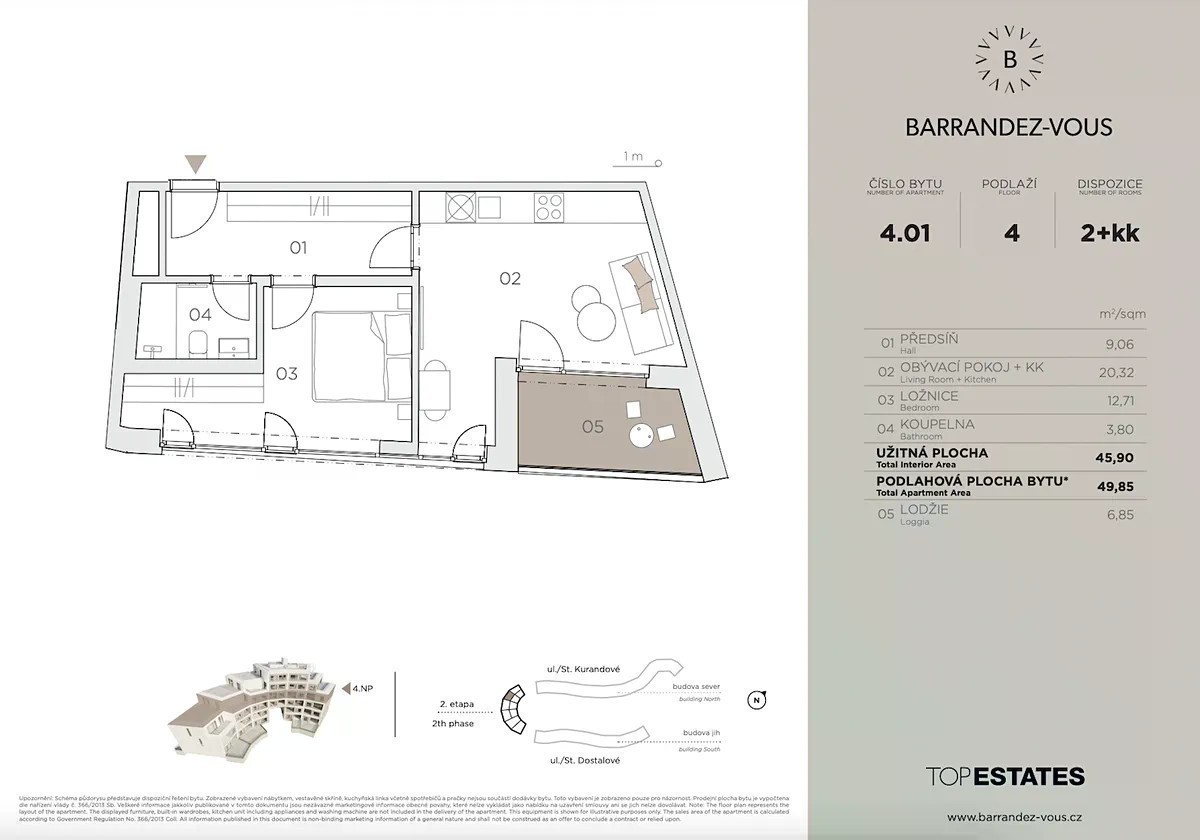 Představte si, jak se usadíte do polštářů přímo u okna a necháte se unášet výhledy do okolí nebo příběhem s knížkou v ruce. Hledáte nové bydlení, které vám takovou pohodu poskytne? Představujeme krásný atypický byt s relaxačním koutem v obývacím pokoji i ložnici! Byt 4.02 (2+kk 46m2) je umístěn ve 4.patře šestipatrové rezidence a bude dokončený na konci letošního roku. Obytný prostor s kuchyňským koutem prodlužuje krytá lodžie s obkladem z přírodního dřeva a pokoj doplňuje další prostor s velkoformátovým sníženým oknem. Pokoje jsou orientované na jihozápadní stranu, kde bude celé odpoledne příjemné posezení s odpoledním sluncem a výhledy do okolí. K příjemné atmosféře domova budou přispívat světlé místnosti díky velkoformátovým hliníkovým oknům. Poskytnou dostatek přirozeného světla a moderní snížené parapety vytvoří posezení, odkud si můžete vychutnávat krásné výhledy v každém ročním období. Pro tepelnou pohodu i stínění jsou již ve standardu venkovní žaluzie. Promyšlené dispozice a prostorné interiéry s vyšší světlou výškou budou doplňovat dřevěné podlahy a designové koupelny s podlahovým vytápěním, celkový komfort bydlení zajistí moderní technologie a parkování v podzemních garážích s možností dobíjecích stanic pro elektromobily. V novém rezidenčním projektu se potkalo vše. Moderní design, vysoký standard, nový domov i pro váš elektromobil, bydlení s výhledy na panorama Prahy i propojení s přírodou. Developerská skupina TOP ESTATES zahájila výstavbu druhé etapy v 02/2024, hrubá stavba je dokončena a kolaudace bytového domu ZÁPAD je naplánována na konec roku 2025. K rezervaci bytu nyní stačí pouze 15% a zbývající částka až po dokončení. Výjimečným benefitem je v BARRANDEZ-VOUS i venkovní prostor. Originální rukopis Ferdinanda Lefflera, krále českých zahrad, je tady znát na každém kroku. Sdílený park uprostřed nejsou jen stromy a květiny. Součástí jsou i venkovní relaxační a herní prvky, které jsou citlivě zasazeny do celého konceptu zeleně. Pro děti vznikla bezpečná místa pro zábavu a hry a pro všechny ostatní věkové kategorie zóny pro odpočinek i setkávání. Neváhejte se přijít podívat i na dokončenou I. etapu, překvapí vás klidná lokalita, relaxační zóny a příjemná atmosféra nového parku. Naleznete jej v ulici Kurandové na Barrandově, v lokalitě s kompletní občanskou vybaveností a přímým spojením do centra jak MHD, tak autem. V okolí můžete k procházkám do přírody využít blízký Chuchelský háj, Červený lom i kouzelné Prokopské údolí. Unikátnost a kvalitu I. etapy projektu několikrát ocenila také odborná porota prestižními cenami za architekturu a veřejný prostor. OBJEVTE propojení města s přírodou a ŽIJTE SPOKOJENĚ v BARRANDEZ-VOUS. Kompletní nabídku bytů naleznete na stránce projektu.