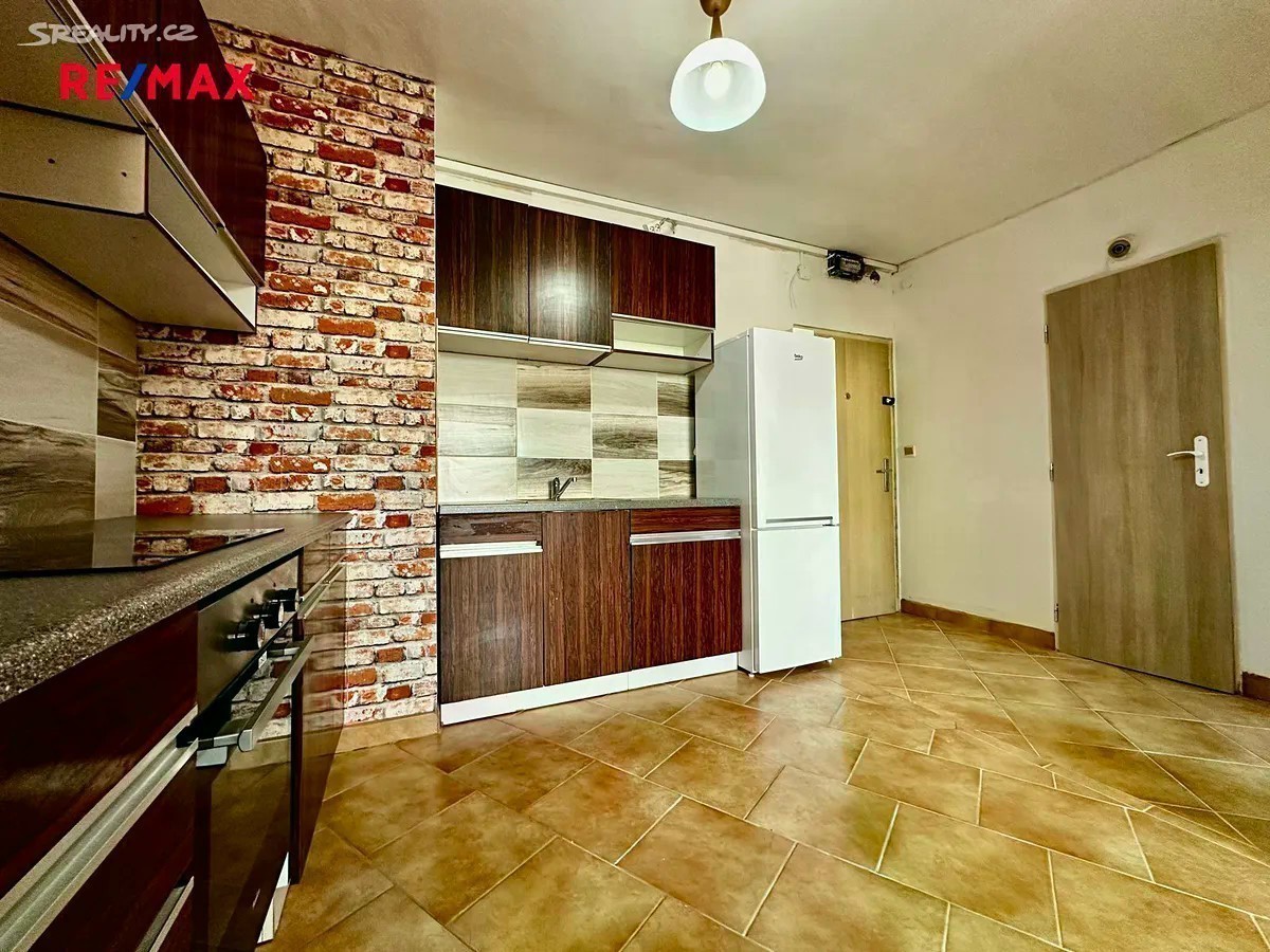 Nabízíme k pronájmu světlý byt 2+kk situovaný v 7. patře panelového domu s výtahem. Byt je pronajímán bez nábytku, takže si jej můžete zařídit dle vlastního vkusu. Výjimkou je ložnice, kde je k dispozici prostorná šatní skříň. Dominantou hlavního pokoje je kuchyňská linka vybavená lednicí, troubou a varnou deskou. Koupelna je řešená sprchovým koutem a toaletou. Samotný dům je zateplený a pod stálým dohledem. Lokalita nabízí kompletní občanskou vybavenost i skvělou dopravní dostupnost. Na vlakové nádraží dojdete za 9 minut, autobusová zastávka je vzdálena pouhé 2 minuty chůze. V okolí najdete mateřské a zdravotní zařízení, obchody (Kaufland, Lidl, Tesco) i další služby. Náklady na bydlení: služby 3 800 Kč / měsíc (pro dvě osoby) elektřina dle spotřeby, doporučená záloha 650 Kč, přepis na nájemníka kauce 29 000 Kč provize RK 17 545 Kč Byt je k nastěhování ihned. Pokud vás naše nabídka zaujala, budeme rádi, když nás kontaktujete - ideálně e-mailem, kde nám prosím zašlete několik základních informací. Obratem se vám ozveme zpět a domluvíme další postup.