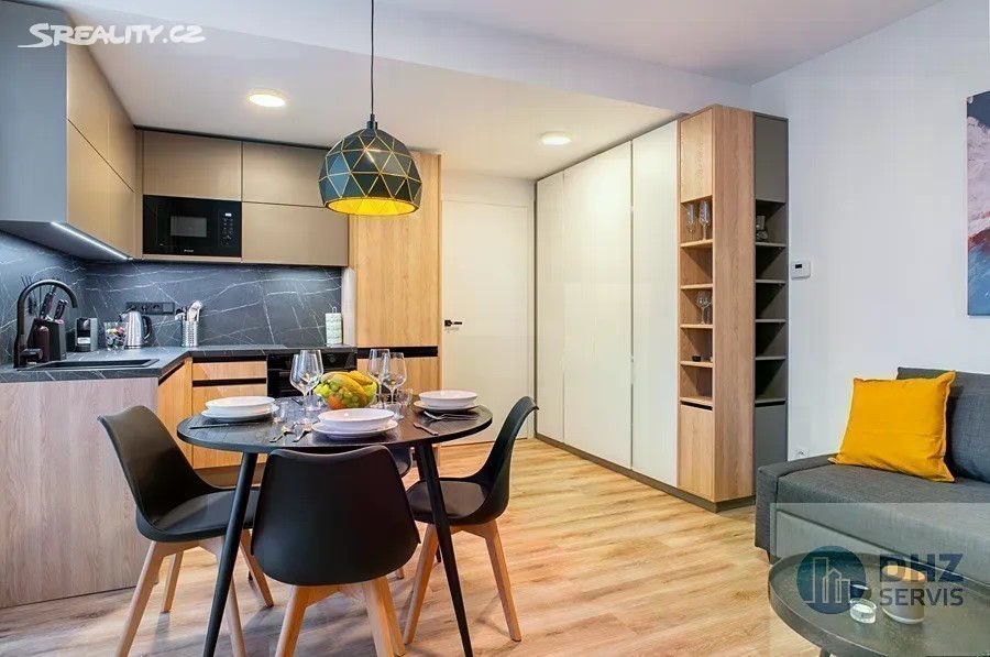 V rámci atraktivní lokality Nymburk - Babín Vám nabízíme k pronájmu moderní, kompletně a nadstandardně vybavený byt o dispozici 2+kk, situovaný ve 3. nadzemním podlaží novostavby. Součástí bytu je balkon o velikosti 2,9 m² orientovaný do klidné parkové části mezi domy a sklepní koje. Byt je vybaven s důrazem na komfort, praktičnost a design - ideální volba pro náročného nájemníka, který hledá klidné a kvalitní bydlení bez nutnosti dalších investic. Vybavení bytu: • Designová kuchyňská linka včetně všech spotřebičů • Obývací část s pohodlnou sedací soupravou, konferenčním stolkem a TV • Ložnice s velkou manželskou postelí, kvalitní matrací a úložným prostorem • Koupelna se sprchovým koutem, umyvadlem s úložnou skříňkou, otopným žebříkem, pračkou a sušičkou • Vestavěné skříně a další úložné prostory • Předokenní žaluzie v celém bytě pro maximální soukromí a tepelný komfort • Podlahové vytápění v celém bytě Další výhody: • Výborná dopravní dostupnost - cca 15 minut chůze na hlavní nádraží, autem se dostanete za 30 minut na Černý most • Veškerá občanská vybavenost v pěší dostupnosti • Cyklostezka podél řeky Labe v bezprostřední blízkosti • Moderní výtah a společné prostory pro uložení kol • Parkovacích stání před domem a v okolí Měsíční nájemné: 21.000 Kč Zálohy na služby, vodu a teplo: 4.000 Kč Elektřina se přepisuje na nájemníka Vratná kauce: 42.000 Kč Provize RK: 21.000 Kč + DPH K nastěhování ihned Fotografie zobrazují skutečný stav bytu a součástí je veškeré vybavení, nejedná se o ilustrační fotografie. Neváhejte nás kontaktovat pro více informací nebo domluvení prohlídky.