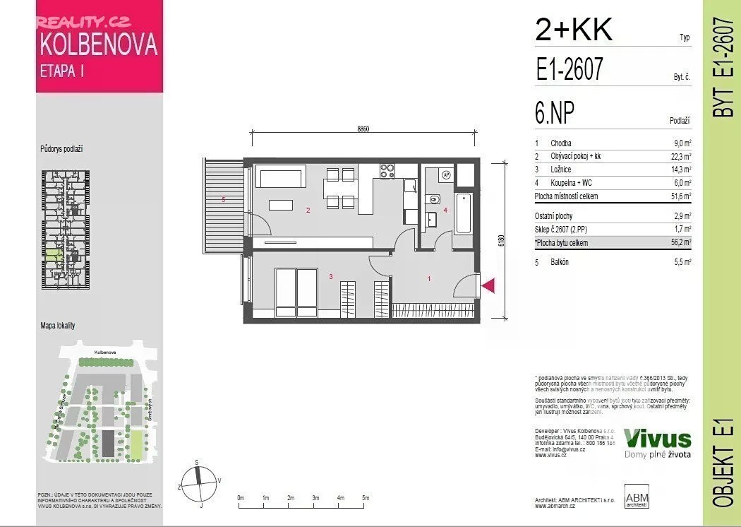 Vzhledem k velmi vysokému zájmu o námi nabízené nemovitosti žádáme všechny vážné zájemce o prohlídky, aby nás pro rychlý a efektivní postup kontaktovali výhradně skrze formulář níže. Následně Vám emailem zašleme krátký osobní dotazník, ve kterém bude třeba uvést několik základních informací. Po vyplnění tohoto dotazníku obdržíte informaci o dalším postupu. Nabízíme k podnájmu byt 2+kk, o celkové výměře 52 m², v 6. nadzemním podlaží novostavby s výtahem v Praze 9 - Vysočany, poblíž metra Kolbenova. Byt je pronajímán částečně zařízený nábytkem, který si můžete prohlédnout v přiložené fotogalerii. V rohu obývacího pokoje je umístěna kuchyňská linka s vestavěnými spotřebiči (lednice, trouba, indukční deska, digestoř, mikrovlnná trouba, myčka) v elegantní bílé barvě, jídelní stůl se židlemi a TV stěna. Z místnosti je umožněn vstup na prostorný balkon na kterém si budete moct dopřát chvíle odpočinku. Ložnice disponuje manželkou postelí a šatní skříní. Koupelna je obložena obklady v zemitých tónech a disponuje vanou se sprchovou vanou a toaletou. Příjemným bonusem této nemovitosti je rekuperace, která zajistí zdravé a úsporné bydlení. Spoustu úložného prostoru Vám poskytne šatní skříň na chodbě a také sklepní kóje, která je součástí podnájmu. K bytu navíc náleží i jedno kryté parkovací stání. Dům se pyšní energetickou náročností třídy A - mimořádně úsporná. Nemovitost je určena výhradně k dlouhodobému podnájmu a je k nastěhování od 1.12.2025. Lokalita nabízí výbornou občanskou vybavenost a dopravní dostupnost. Kousek od domu se nachází tramvajová zastávka a stanice metra B - Kolbenova. Během chvilky se dostanete do parku Zahrádky, jehož součástí je kvalitně vybavené venkovní fitness zasazené do povodí říčky Rokytka. Park disponuje dřevěnými cvičebními prvky, které nabízejí možnost posilování a protahování vlastní vahou i originálními doplňky, například na žebřinách, hrazdách a bradlech. Kolem parku také prochází stejnojmenná cyklostezka. Poznámka k ceně: Poplatky za služby vč. pojištění domácnosti a odpovědnosti činí 3.320 Kč/měsíc /1 os. (každá další osoba za příplatek) + elektřina, která bude převedena na nájemníka. Při podpisu smlouvy nájemník hradí první nájemné, dále rezervaci pro agenturu a vratnou kauci ve výši jedné měsíční platby. Pokud se nemůžete na prohlídku bytu dostavit osobně, je možné domluvit prohlídku formou videohovoru. V reakci na tento inzerát o sobě prosím uvádějte alespoň základní informace (počet osob, zaměstnání, od kdy hledáte bydlení, zda máte domácího mazlíčka). Děkujeme.