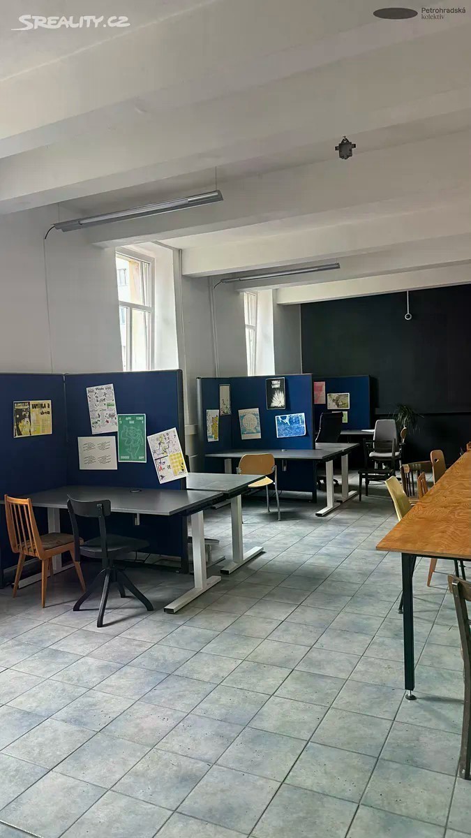 Velký vybavený openspace 165m2 v kulturním centru Petrohradská kolektiv. Prostor se skládá z jedné velké místnosti a sousedící místnosti. Velká místnost s plochou 165m2 je nabízena za cenu 35000,- a místnost sousedící je 15000,- Cena je s energiemi (bez velkých spotřebičů). Kapacita aktuálně 25-30míst. V prostoru je kuchyňská linka s dřezem, prosklenou lednicí, myčkou a sekretářem. Budova je vybavena kavárnou, prostorem pro přednášky, možností fotostudia. V budově je risografické studio, sítotisk, nahrávací zvukové studio pro film a video. Odhad existence objektu - 2 roky.