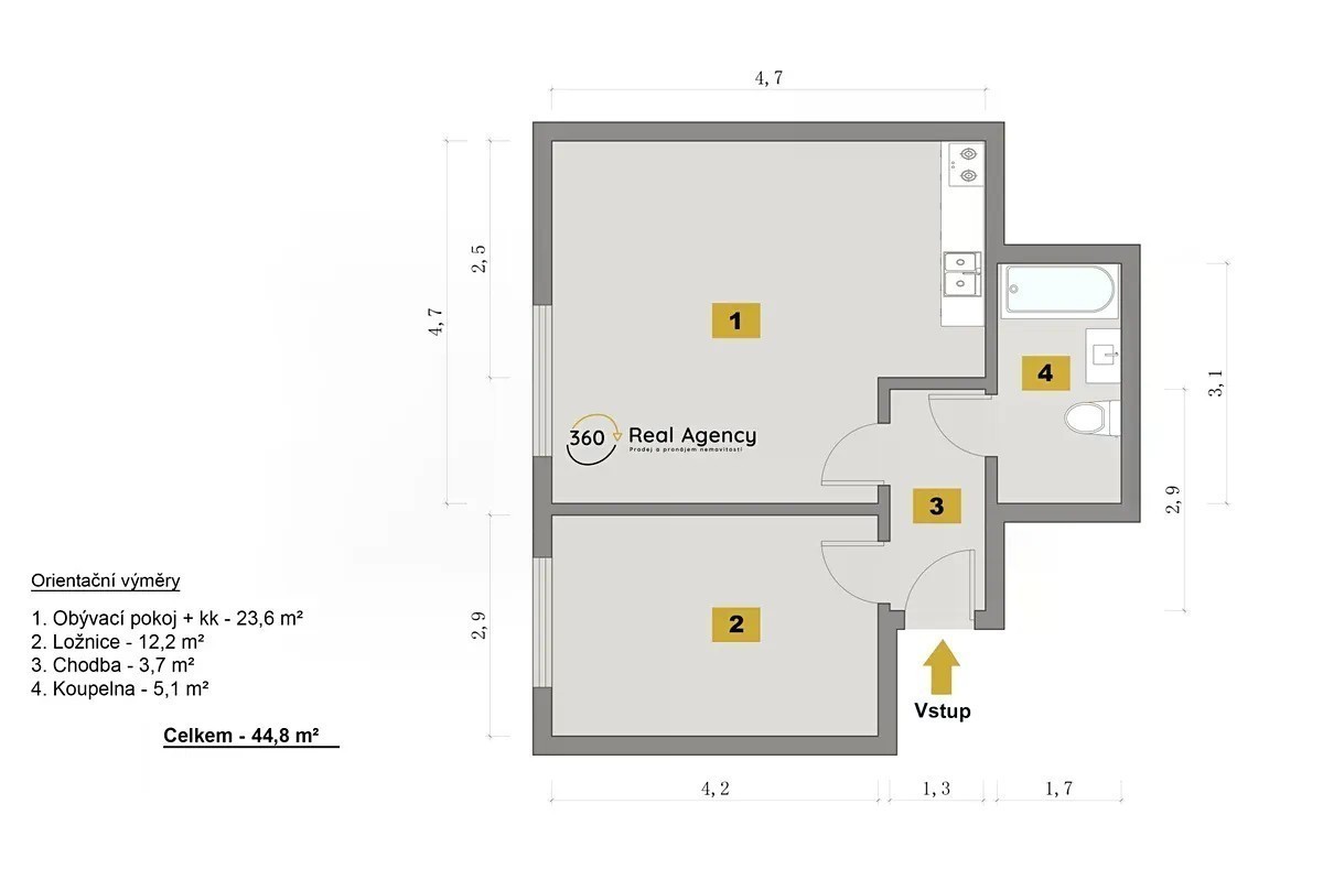Ve výhradním zastoupení nabízíme k prodeji světlý byt 2+kk o velikosti 46,8 m2 se sklepem (2,3 m2), umístěný v přízemí prestižního projektu Barrandov Hills. Byt disponuje obývacím pokojem s kuchyňským koutem (24,9 m2), ložnicí (12,6 m2), prostornou předsíní a koupelnou s vanou a toaletou. Díky své dispozici je vhodný nejen k komfortnímu bydlení, ale také jako kancelář nebo ordinace, což z něj činí zajímavou investiční příležitost. Vybavení a standard • klimatizace, alarm, bezpečnostní dveře i okna • elektrické rolety a vnitřní bezpečnostní žaluzie • plastová okna orientovaná na jihovýchod s výhledem do zeleně • kuchyňská linka, lednice, příprava na pračku Před okny se nachází vzrostlé túje, které zajišťují naprosté soukromí. Rezidenční projekt Barrandov Hills • nonstop ostraha, potraviny a kavárna přímo v domě • kolárna a kočárkárna pro obyvatele • energetická náročnost budovy: C Lokalita a dostupnost V bezprostřední blízkosti je tramvajová zastávka se spoji do centra Prahy, supermarket Lidl a především přírodní park Prokopské údolí pro volnočasové aktivity. Barrandov nabízí kompletní občanskou vybavenost - školy, školky, zdravotnická zařízení, obchody i oblíbený aquapark. Díky napojení na Pražský okruh je cesta autem do centra rychlá a na letiště Václava Havla se dostanete přibližně za 20 minut. Shrnutí Byt 2+kk / 47 m2 + sklep 2,3 m2 Barrandov Hills - moderní projekt s výbornou dostupností i občanskou vybaveností Možnost využití jak k bydlení, tak k podnikání Doporučujeme osobní prohlídku.