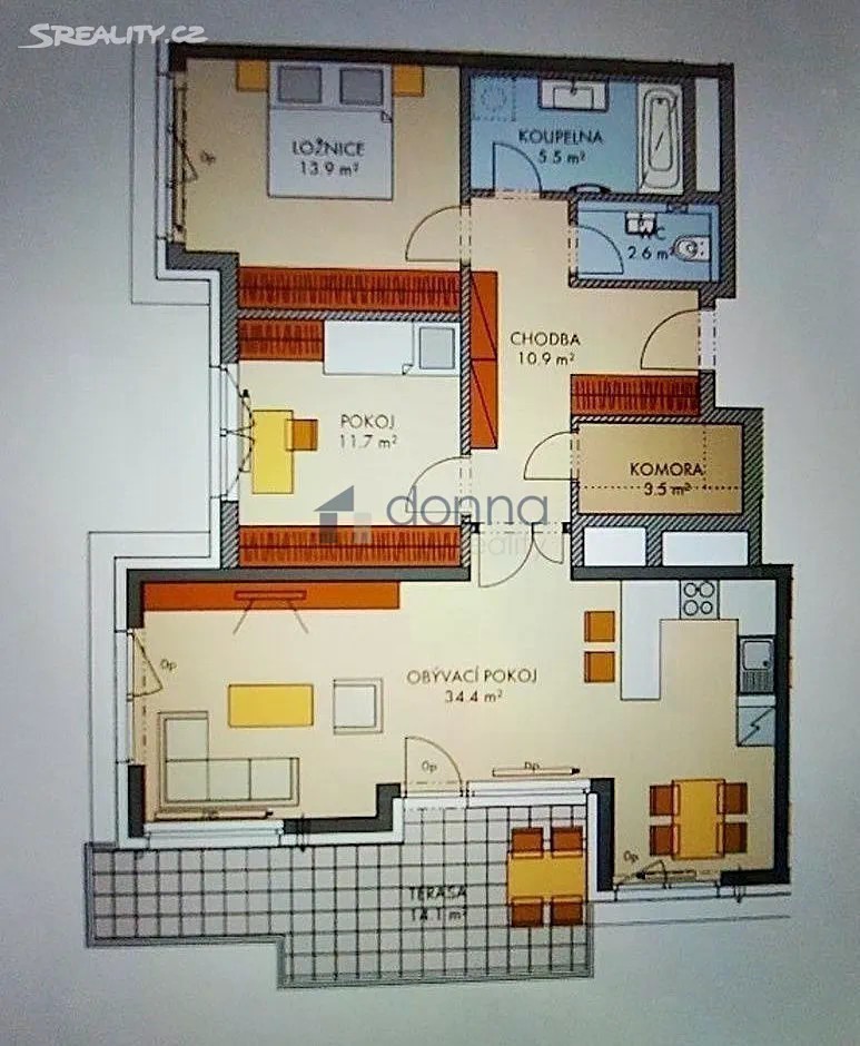 Pronájem nového, zařízeného bytu 3+kk, plocha 87m2 + terasa 14m2, v 1. podlaží cihlové novostavby, ul. Thomasova, Praha 5 - Třebonice. K bytu patří garážové stání, které je v ceně nájmu. K dispozici ihned. Byt není vhodný pro zájemce se zvířaty. Vstupní chodba, obývací pokoj 34m2 s moderní kuchyňskou linkou a jídelním koutem, dvě samostatné ložnice (12m2 a 14m2), koupelna se sprchovým koutem, komora, samostatná toaleta. Byt je z velké části vybaven nábytkem. V kuchyni jsou nové kvalitní spotřebiče - lednice, indukční varná deska, trouba, mikrovlnná trouba, myčka a digestoř, v koupelně nová pračka se sušičkou. V obývacím pokoji oproti fotografiím chybí gauč. V ložnici není matrace. Pokoje jsou vybaveny venkovními roletami. Orientace oken na jih a na západ. Dům se nachází 5 min pěšky od stanice metra B Stodůlky. V docházkové vzdálenosti je obchodní centrum Zličín (Tesco, IKEA, aj.). V bezprostřední blízkosti jsou prostory pro volnočasové aktivity: procházky, fitness, hřiště atd.