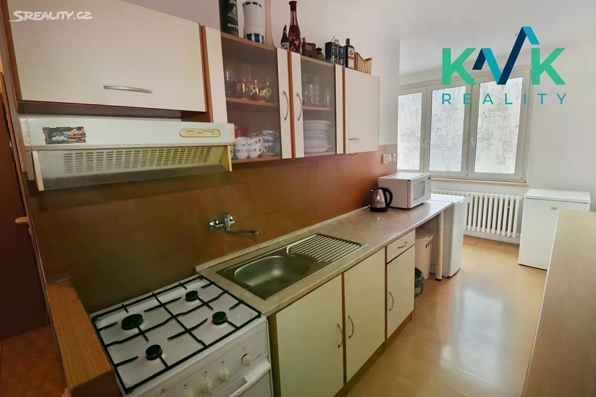 Nabízíme k pronájmu byt 2 + 1 v 7. patře panelového domu s výtahem. Za vstupními dveřmi je prostorná chodba, z níž se vchází do všech místností. Rekonstruovaná koupelna má rohovou vanu a WC, je obložená keramickými obklady. Kuchyňská linka je situována u bytového jádra, vzniká tak větší prostor pro jídelnu. Součástí linky je plynový sporák. Všechny místnosti jsou osazeny plastovými okny, položena je plovoucí podlaha. Teplo je řešeno dálkově s poměrovým rozpočítáním nákladů, do bytu je přivedena studená i teplá voda a plyn. Měsíční nájem činí celkem 10.500 Kč, zálohy na služby spojené s užíváním bytu 3.000 Kč. Peněžní jistota je ve výši 21.000 Kč, bez poplatku realitní kanceláři. K bytu náleží sklep a výhradní užívání balkonu v mezipatře. Bezplatné parkování je možné na parkovišti před domem. Nejdek ke město s mnoha pracovními příležitostmi v místních firmách. Leží v Krušných horách, v blízkosti jsou lyžařské areály, běžecké a cykloturistické trasy v krásné krušnohorské přírodě.