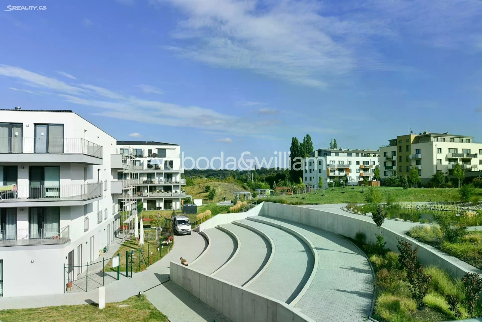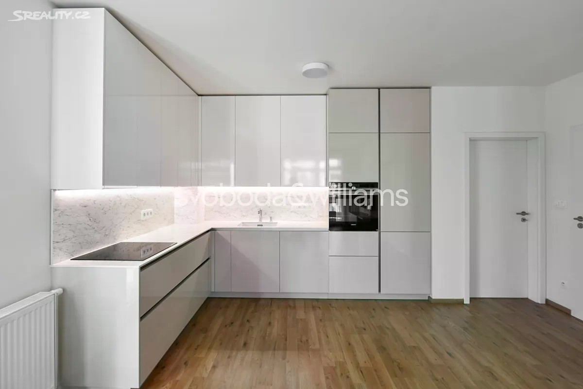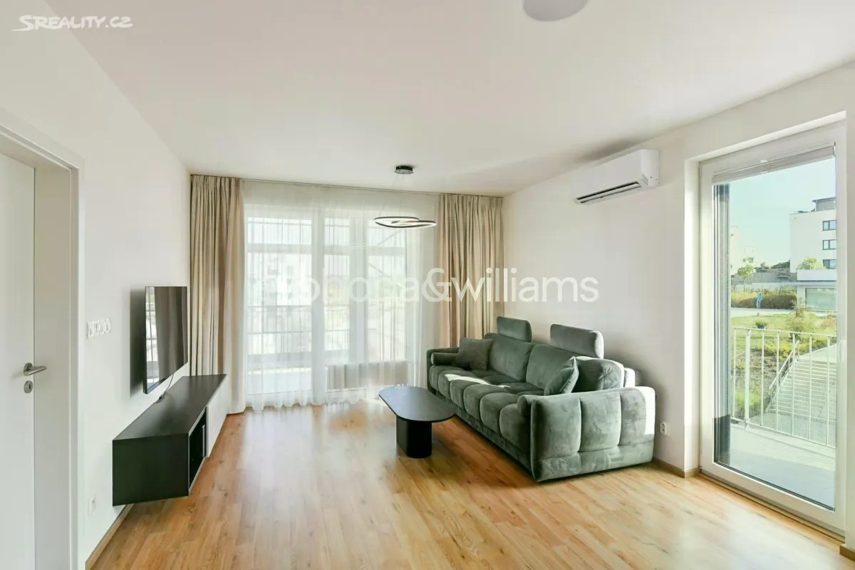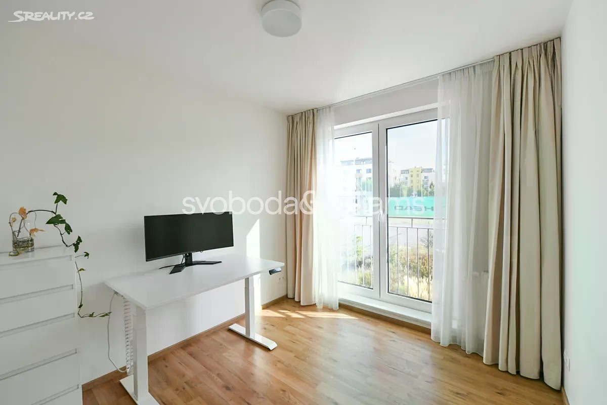 Nabízíme k pronájmu nový zařízený byt s terasou, situovaný ve 2. patře novostavby Rezidence Velvaria s výtahem a parkováním. Budova se nachází v klidné přírodní lokalitě v Praze Horoměřicích, v místě s rychlou dostupností do mezinárodních škol ISP a Riverside School. V okolí je k dispozici dobrá občanská vybavenost, pár kroků od domu je autobusová zastávka s pravidelnými spoji ke stanici metra Bořislavka (11 minut jízdy). Letiště Václava Havla je vzdáleno cca 15 minut jízdy autem. Interiér tvoří obývací pokoj s plně vybavenou kuchyní a jídelním prostorem, ložnice, pracovna / druhá ložnice, koupelna s vanou, samostatná toaleta, šatna / úložná komora a vstupní chodba. Terasa je přístupná z obývacího pokoje a jedné ložnice. Klimatizace v obývacím pokoji, rekuperace, laminátové podlahy, dlažba, centrální vytápění, sítě proti hmyzu, pračka, sušička, kuchyň Hanák, myčka, indukční varná deska, granitový dřez, mikrovlnná trouba, zahradní nábytek. V ceně je zahrnuto garážové stání.