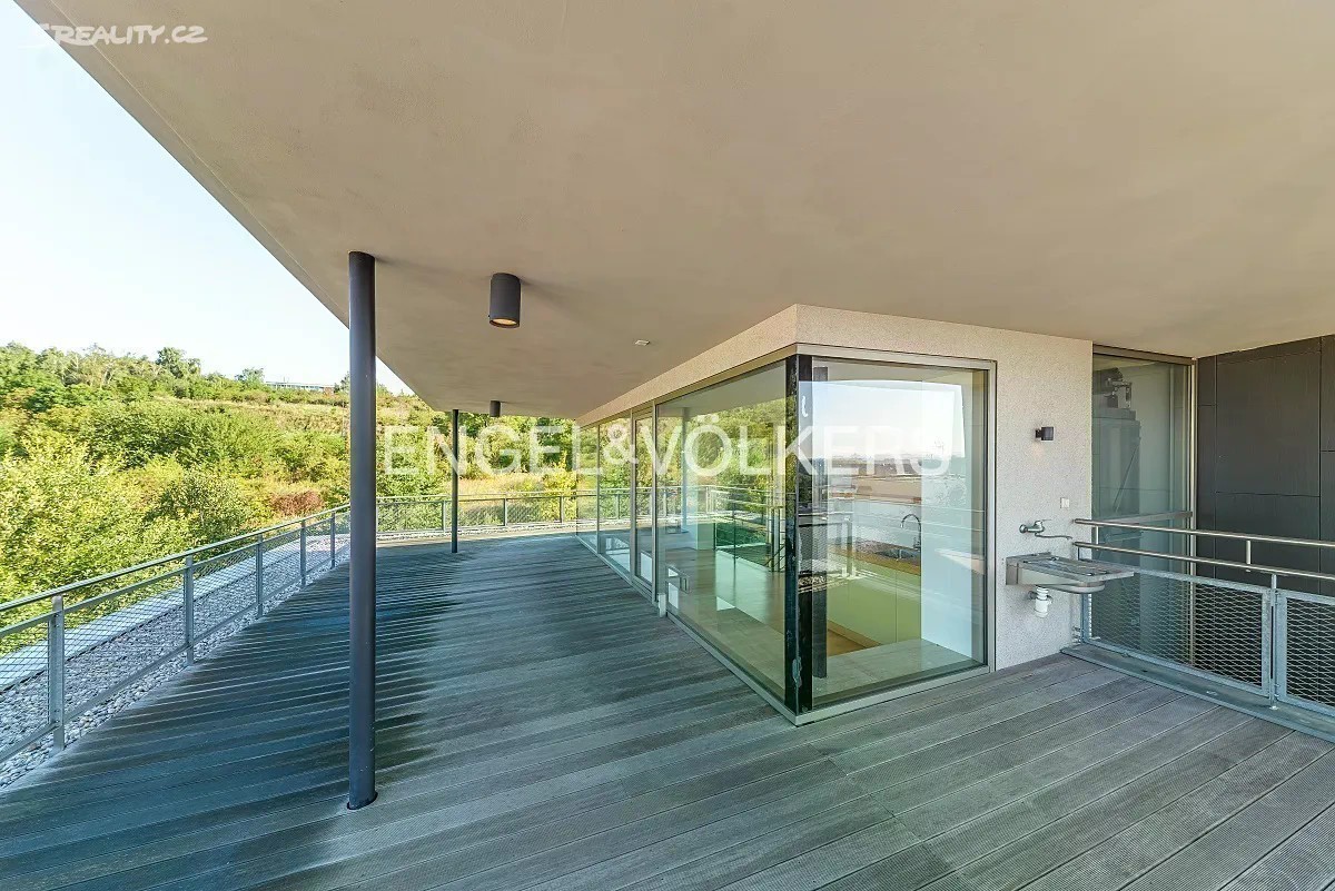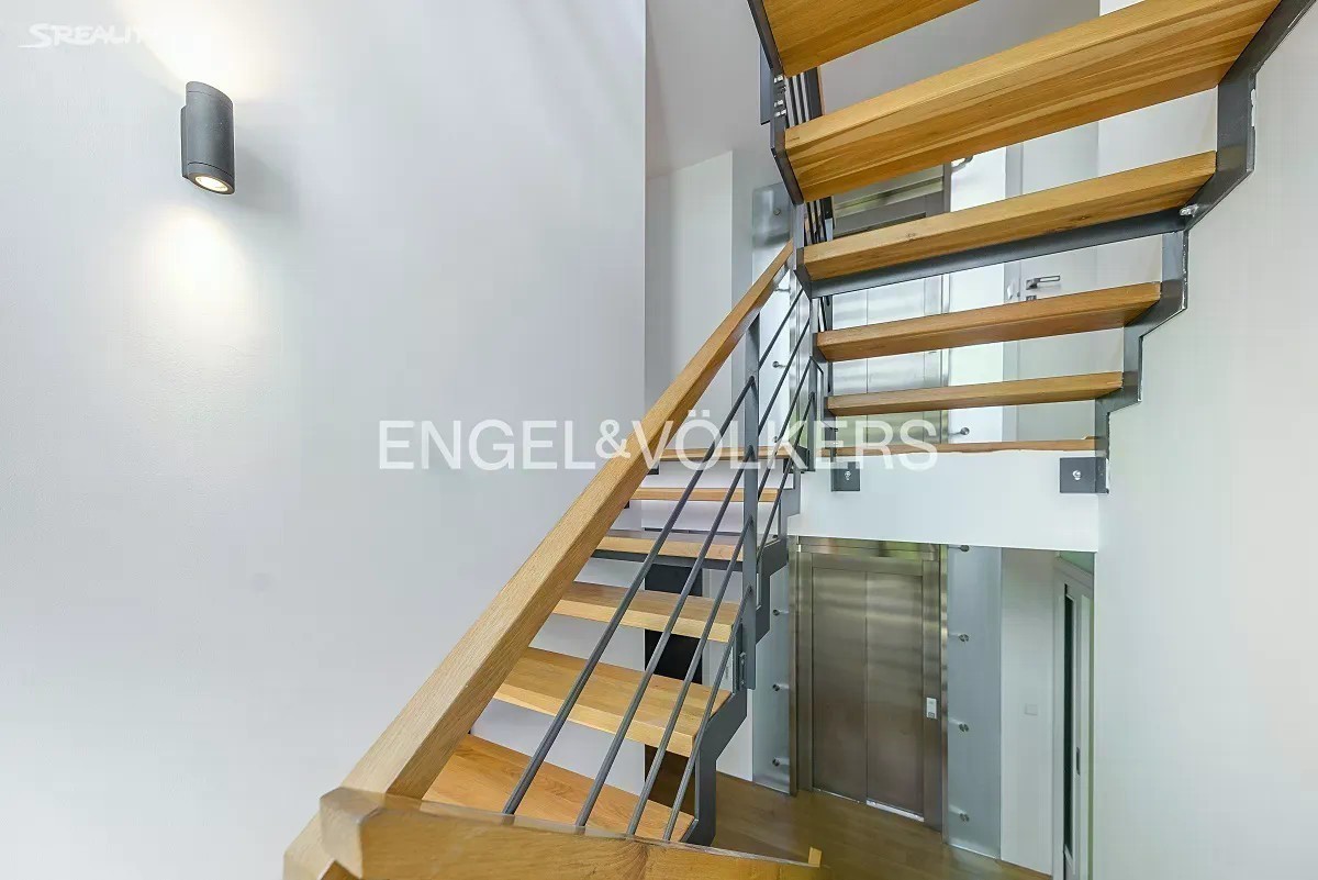 K pronájmu od 1. 12. 2025 je připraven bezbariérový rodinný dům s výtahem v blízkosti Německé školy. Velkorysá dispozice domu se šesti ložnicemi, pěti koupelnami, extra toaletami, prostorným obývacím pokojem a velkorysou plně vybavenou kuchyní se všemi spotřebiči. Vstupní patro slouží jako společenská část s prostorným obývacím pokojem s krbem, plně vybavenou kuchyní, pracovnou a vstupem na klidnou zahradu. Další patra slouží jako privátní část s pěti ložnicemi, se šatnami a koupelnami. Poslední patro domu je možné využít jako samostatnou jednotku díky menší kuchyni. Též je zde vstup na prostornou terasu s výhledy do okolní zeleně a na zahradu. K domu náleží velký sklep a mnoho úložných prostor. Parkování v kryté garáži pro dva automobily. Poplatky včetně zúčtovatelných záloh přibližně 10 000 Kč.