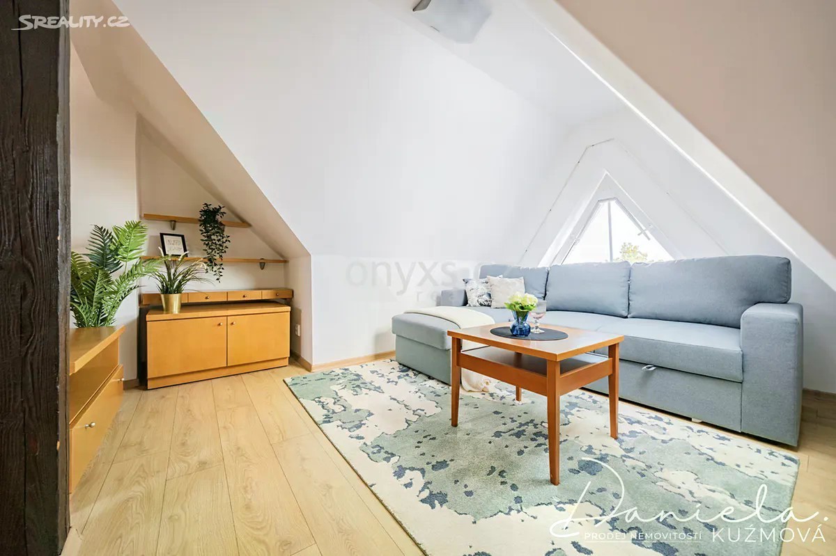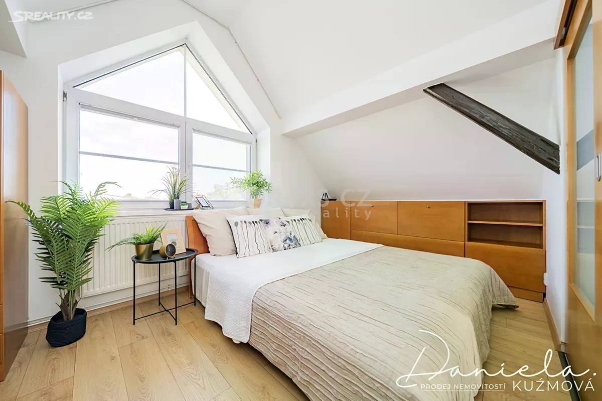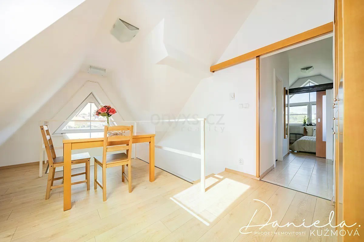 Podnájem kompletně vybaveného bytu 2+kk, 61m2 v podkroví vily se zahradou ve vilové zástavbě v blízkosti metra a vlaku. Nabízíme k podnájmu útulný a plně vybavený byt nacházející se v podkrovních prostorech vilového domu. V přízemí domu sídlí kanceláře, nad nimiž se nachází tři samostatné bytové jednotky určené k dlouhodobému pronájmu. Do bytu vystoupáte schodištěm, které vás zavede do jídelní a obytné části. Na obývací prostor přímo navazuje kuchyně vybavená lednicí, sporákem s varnou deskou a mikrovlnnou troubou a myčkou. Z kuchyně je vstup do ložnice s manželskou postelí a dostatkem úložného prostoru díky vestavěným skříním. Prostorná koupelna s oknem nabízí sprchový kout, umyvadlo, WC a pračku se sušičkou. Bonusem je půdní prostor náležející k bytu, který může sloužit jako praktické úložiště. K relaxaci je nájemníkům k dispozici udržovaná zahrada u domu. Parkování je možné přímo na ulici před vilou. V docházkové vzdálenosti cca 10 min. je metro linky „B“ - Rajská zahrada a vlakové nádraží. Přímo u domu se nachází autobusová zastávka. Byt je připraven ihned k nastěhování. Neváhejte a domluvte si prohlídku ještě dnes!