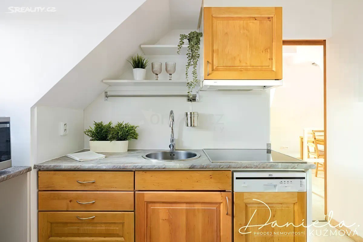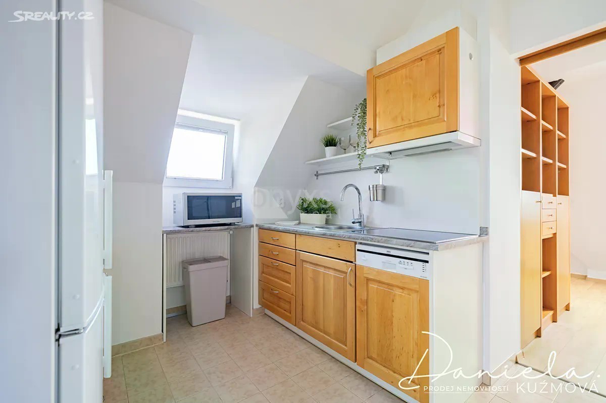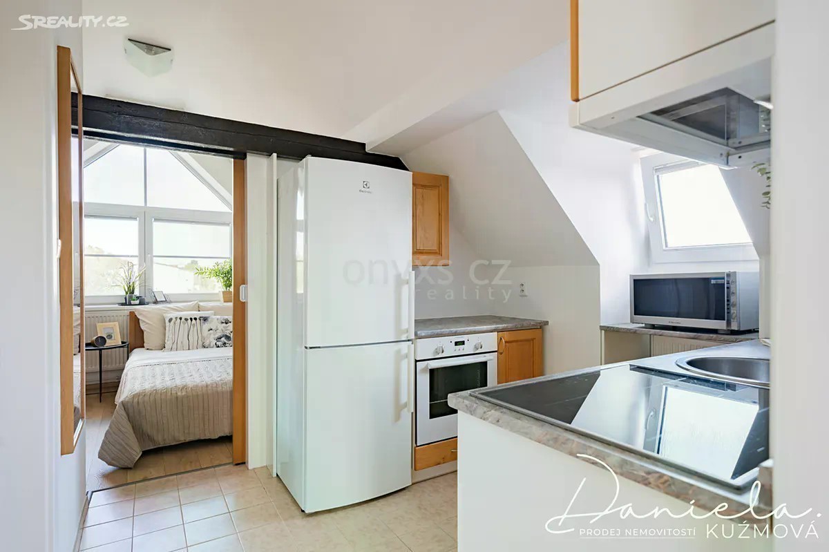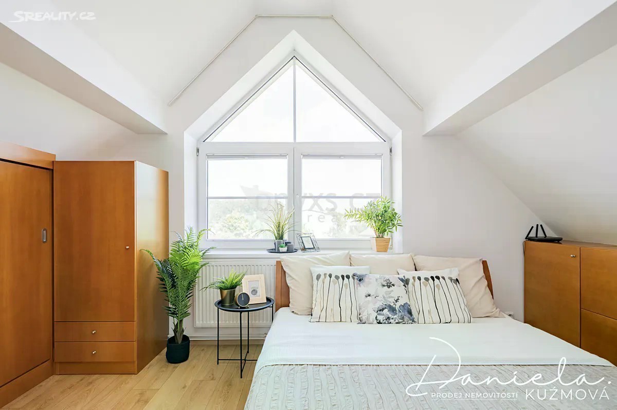 Podnájem kompletně vybaveného bytu 2+kk, 61m2 v podkroví vily se zahradou ve vilové zástavbě v blízkosti metra a vlaku. Nabízíme k podnájmu útulný a plně vybavený byt nacházející se v podkrovních prostorech vilového domu. V přízemí domu sídlí kanceláře, nad nimiž se nachází tři samostatné bytové jednotky určené k dlouhodobému pronájmu. Do bytu vystoupáte schodištěm, které vás zavede do jídelní a obytné části. Na obývací prostor přímo navazuje kuchyně vybavená lednicí, sporákem s varnou deskou a mikrovlnnou troubou a myčkou. Z kuchyně je vstup do ložnice s manželskou postelí a dostatkem úložného prostoru díky vestavěným skříním. Prostorná koupelna s oknem nabízí sprchový kout, umyvadlo, WC a pračku se sušičkou. Bonusem je půdní prostor náležející k bytu, který může sloužit jako praktické úložiště. K relaxaci je nájemníkům k dispozici udržovaná zahrada u domu. Parkování je možné přímo na ulici před vilou. V docházkové vzdálenosti cca 10 min. je metro linky „B“ - Rajská zahrada a vlakové nádraží. Přímo u domu se nachází autobusová zastávka. Byt je připraven ihned k nastěhování. Neváhejte a domluvte si prohlídku ještě dnes!