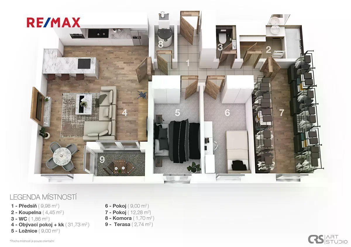 Nadstandardně vybavený byt 4+kk s lodžií a parkovacím stáním Hledáte bydlení, které spojuje styl, komfort a skvělou dopravní dostupnost? Právě pro Vás mám tento moderně a nadstandardně vybavený byt, který nabízí dokonalé zázemí i pro náročné. Exkluzivně nabízím k prodeji byt v osobním vlastnictví o velikosti 4+kk a rozloze 84 m2 + 3 m2 lodžie ve čtvrtém patře novostavby s výtahem v atraktivní lokalitě P10 - Uhříněves v ulici Karla Guta. V bytě byly použity velmi kvalitní materiály. Součástí bytu je klimatizace, předokenní žaluzie, nadstandardní podlahová krytina, osvětlení a koupelnová sanita. Dominantou bytu je prostorný a útulný obývací pokoj s kompletně vybavenou kuchyňskou linkou a se vstupem na lodžii, komora, předsíň s vestavěnou skříni, ložnice s vestavěnou skříni, dětský pokoj s dalším vestavným úložným prostorem, moderní samostatnou šatnu, koupelnu s vanou a samostatné WC. Byt se prodává včetně kompletního zařízení, takže je připraven k okamžitému nastěhování bez nutnosti dalších investic. K bytu patří jedno venkovní parkovací stání. Lokalita s kompletně vybavenou občanskou vybaveností - přímo u domu se nachází supermarket BILLA, restaurace. V pěším dosahu jsou dvě základní školy, školka, pošta. Výborná dopravní dostupnost - zastávka MHD je umístěna téměř u domu - 14 minut BUS na metro C - Háje nebo další spoje na metro A. Vlakové nádraží se nachází 10 minut pěší chůzí od bytu a dostanete se odsud za 19 minut na Hlavní nádraží. Uhříněves je jednou z nejoblíbenějších části Prahy, a to jak pro rodinné bydlení, tak i pro podnikatele. Nabízí nejen příjemné prostředí, ale také perfektní dostupnost do centra Prahy. V okolí najdete parky, cyklostezky i sportovní areály. Koupi bytu lze financovat hypotečním úvěrem, s jehož vyřízením Vám moc rádi pomůžeme. Doporučuji prohlídku.
