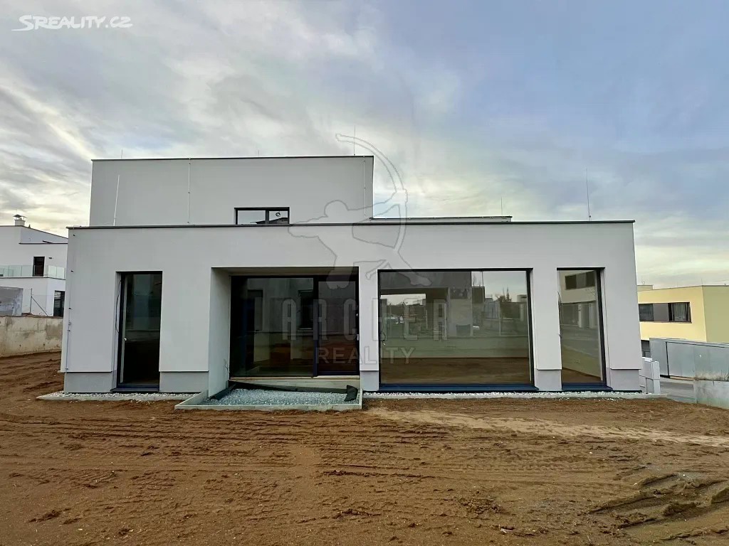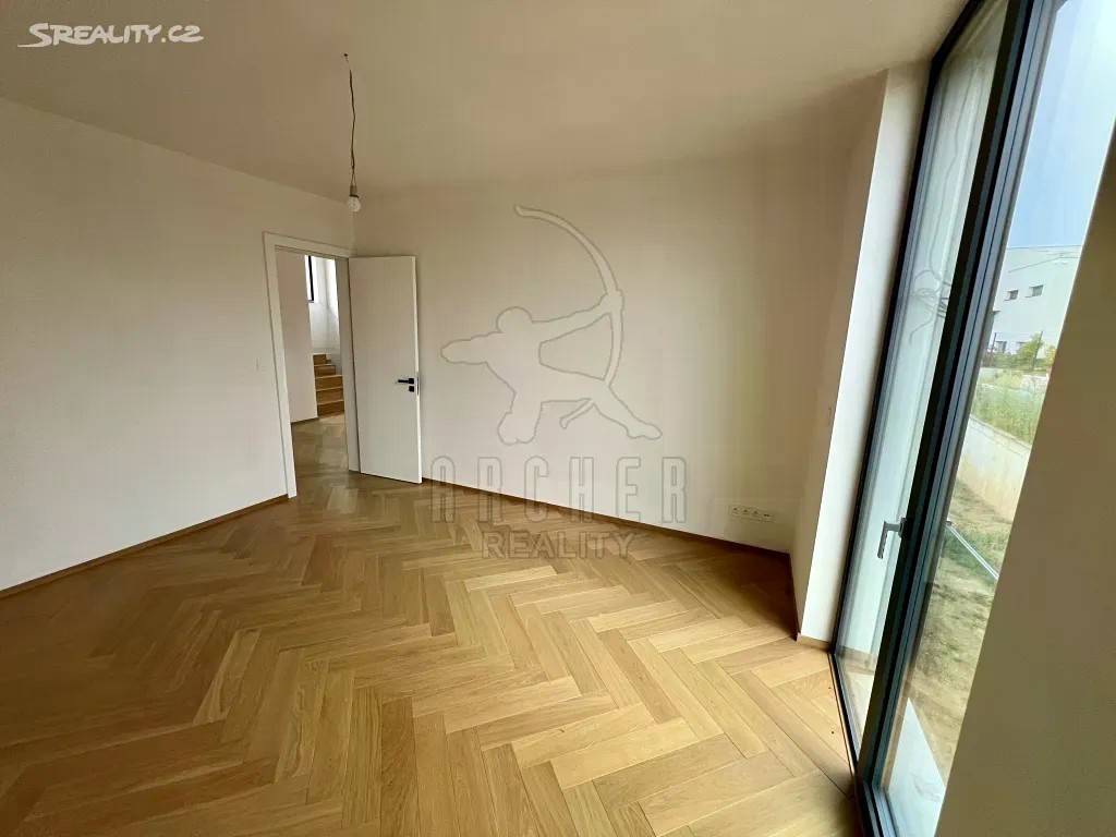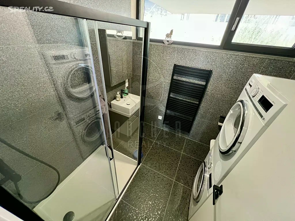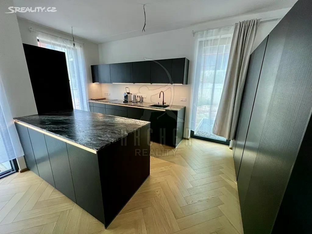 Nabízíme k prodeji dům 7+1/T/G, s podlahovou plochou 289,50m2, 29,50m2 terasa, 43,20m2 garáž, Praha 5 - Velká Chuchle, ul. Bochníčkova. Právě dokončená novostavba velkorysé rodinné vily se nachází ve svahu s fantastickým výhledem na polovinu Prahy. Vila byla vystavena v rámci rezidenčního projektu Vily Chuchle, který zajišťuje vysoký standard bydlení a zároveň perfektní infrastrukturu. Lze ji pojmout jako reprezentativní 7+1, nebo jako dvougenerační dům o dvou kuchyních. Pojďme se však nejdříve projít po mimořádně světlé budově, zalité sluncem ze všech světových stran. Vstupní hala s dostatkem místa pro vestavěné skříně plní funkci elegantního zádveří. Dveře do garáže pro dva automobily zajišťují, že vejdete suchou nohou z vozu až třeba do kuchyně. Perlou prvního podlaží je pak ohromný obývací prostor o 60m2. Je organicky rozčleněn na kuchyni se samostatným vchodem do zahrady a na západní terasu, jídelnu s navazující jižní terasou a klidovou, společenskou zónu s dalším vstupem do zahrady. Kuchyňská linka je v nejvyšším standardu s impregnovanou žulovou deskou, v nejbližších dnech budou instalovány spotřebiče. Přízemí ještě nabízí příjemný hostinský pokoj a první koupelnu se sprchovým koutem, jakož i samostatnou toaletu. V mezipatře se nám v nabídnou dvě ložnice ve východní orientaci, jedna z nich se samostatnou koupelnou a walk-in šatnou. Hornímu patru pak vévodí další obytný prostor s možností zařízení další plnohodnotné kuchyně. Nalezneme zde i další ložnici a třetí koupelnu s vanou. Pomyslná prohlídka končí v nejvyšší ložnici s famózním výhledem. na Prahu. Veškeré podlahy v domě jsou pokryty nadstandardně širokými dubovými parketami, schody jsou z dřevěného masivu. Všechny pokoje jsou vytápěny podlahovým topením, jež zajišťuje tepelné čerpadlo. V domě je možnost zavedení kompletní klimatizace. Všechny tři koupelny poskytují možnost dovybavit si sanitu podle vlastního vkusu. Vila byla vystavěna v roce 2024, splňuje PENB třídy C s výhledem na možnost úpravy na třídu B. Je centrálně orientována, pozemek poskytuje využití na tři světové strany. Ve vyhledávané čtvrti Velká Chuchle se kloubí původní vesnický charakter s moderní lukrativní zástavbou, to vše posazené do romantické krajiny Chuchelského háje. Veškerá občanská vybavenost je k dispozici v blízkosti - mateřská a základní škola, zdravotnické zařízení, pošta a supermarkety. Vlaková stanice 5 min od domu, příměstskými vlaky 10 min na Hlavní nádraží, Praha Anděl 5 min. autem. Třída G - Mimořádně nehospodárná - Energetický štítek budovy (PENB) nebyl dodán.