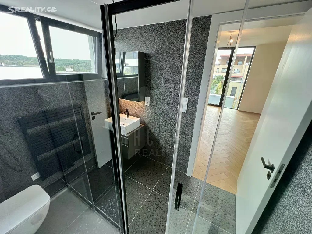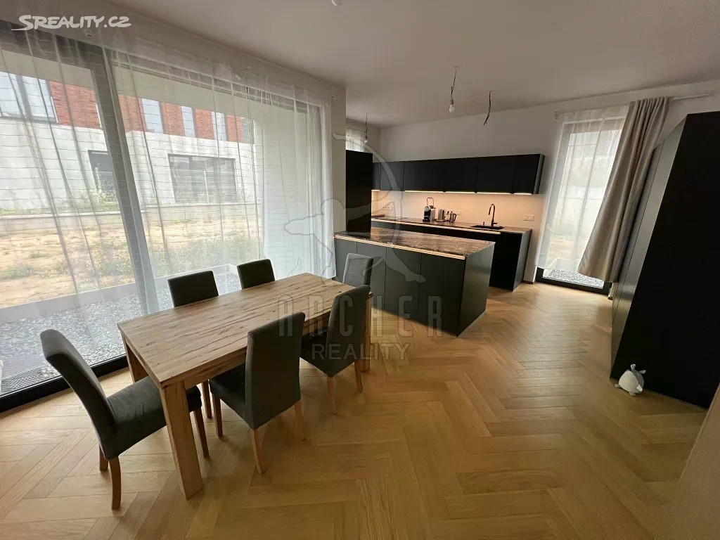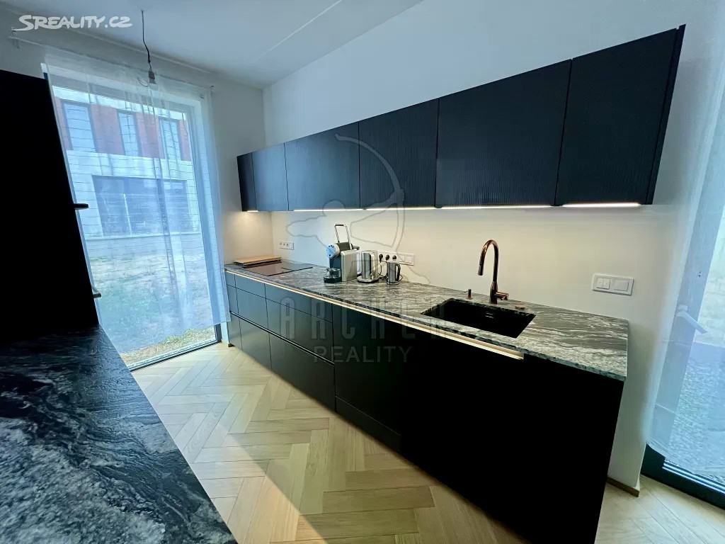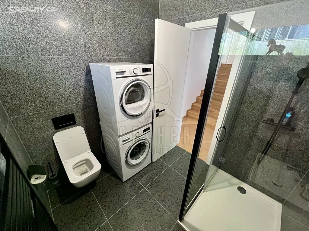 Nabízíme k prodeji dům 7+1/T/G, s podlahovou plochou 289,50m2, 29,50m2 terasa, 43,20m2 garáž, Praha 5 - Velká Chuchle, ul. Bochníčkova. Právě dokončená novostavba velkorysé rodinné vily se nachází ve svahu s fantastickým výhledem na polovinu Prahy. Vila byla vystavena v rámci rezidenčního projektu Vily Chuchle, který zajišťuje vysoký standard bydlení a zároveň perfektní infrastrukturu. Lze ji pojmout jako reprezentativní 7+1, nebo jako dvougenerační dům o dvou kuchyních. Pojďme se však nejdříve projít po mimořádně světlé budově, zalité sluncem ze všech světových stran. Vstupní hala s dostatkem místa pro vestavěné skříně plní funkci elegantního zádveří. Dveře do garáže pro dva automobily zajišťují, že vejdete suchou nohou z vozu až třeba do kuchyně. Perlou prvního podlaží je pak ohromný obývací prostor o 60m2. Je organicky rozčleněn na kuchyni se samostatným vchodem do zahrady a na západní terasu, jídelnu s navazující jižní terasou a klidovou, společenskou zónu s dalším vstupem do zahrady. Kuchyňská linka je v nejvyšším standardu s impregnovanou žulovou deskou, v nejbližších dnech budou instalovány spotřebiče. Přízemí ještě nabízí příjemný hostinský pokoj a první koupelnu se sprchovým koutem, jakož i samostatnou toaletu. V mezipatře se nám v nabídnou dvě ložnice ve východní orientaci, jedna z nich se samostatnou koupelnou a walk-in šatnou. Hornímu patru pak vévodí další obytný prostor s možností zařízení další plnohodnotné kuchyně. Nalezneme zde i další ložnici a třetí koupelnu s vanou. Pomyslná prohlídka končí v nejvyšší ložnici s famózním výhledem. na Prahu. Veškeré podlahy v domě jsou pokryty nadstandardně širokými dubovými parketami, schody jsou z dřevěného masivu. Všechny pokoje jsou vytápěny podlahovým topením, jež zajišťuje tepelné čerpadlo. V domě je možnost zavedení kompletní klimatizace. Všechny tři koupelny poskytují možnost dovybavit si sanitu podle vlastního vkusu. Vila byla vystavěna v roce 2024, splňuje PENB třídy C s výhledem na možnost úpravy na třídu B. Je centrálně orientována, pozemek poskytuje využití na tři světové strany. Ve vyhledávané čtvrti Velká Chuchle se kloubí původní vesnický charakter s moderní lukrativní zástavbou, to vše posazené do romantické krajiny Chuchelského háje. Veškerá občanská vybavenost je k dispozici v blízkosti - mateřská a základní škola, zdravotnické zařízení, pošta a supermarkety. Vlaková stanice 5 min od domu, příměstskými vlaky 10 min na Hlavní nádraží, Praha Anděl 5 min. autem. Třída G - Mimořádně nehospodárná - Energetický štítek budovy (PENB) nebyl dodán.