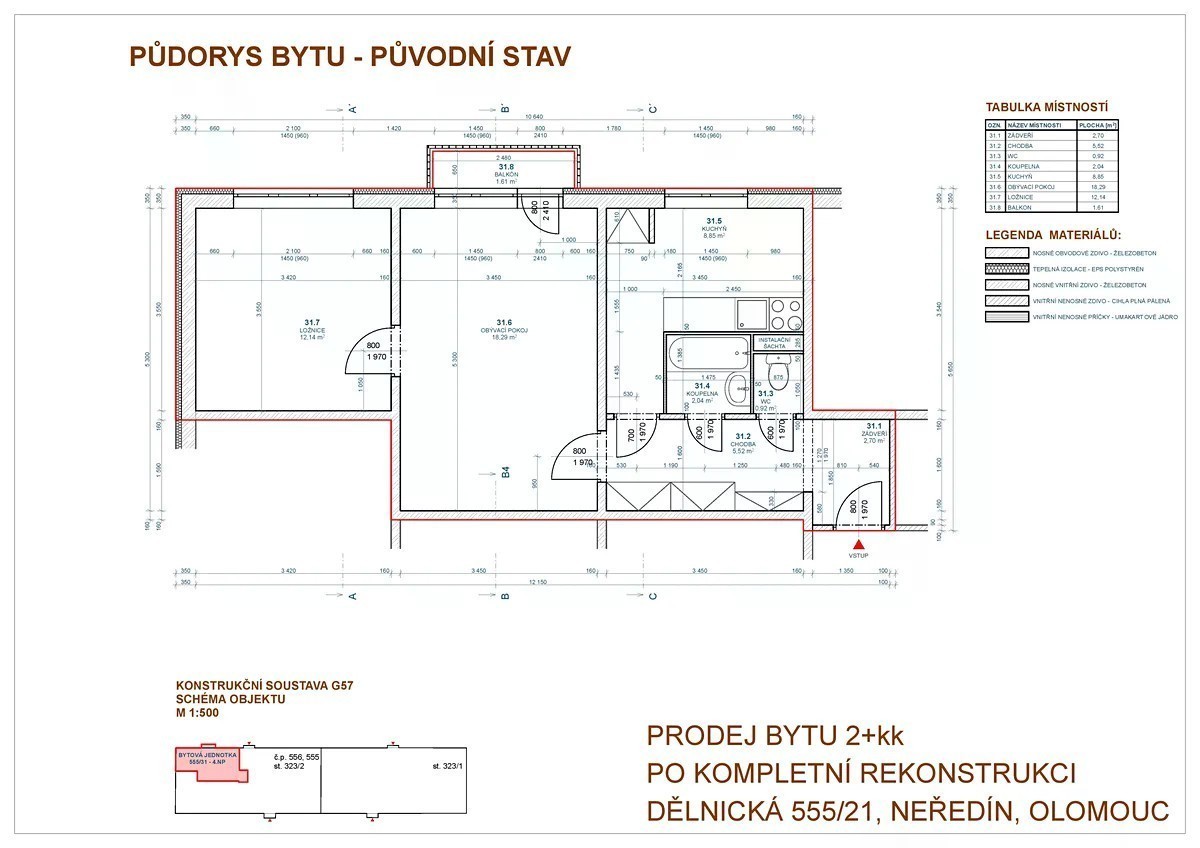 Prodej moderního bytu 2+kk po kompletní rekonstrukci v Olomouci - Neředíně Nabízíme k prodeji krásný, kompletně zrekonstruovaný byt o velikosti 52 m² v atraktivní lokalitě Olomouc - Neředín, ulice Dělnická. Byt je po kompletní nadstandardní rekonstrukci realizované v roce 2021 - výměna oken, vstupních i interiérových dvěří, podlah, omítek, instalací, dále nové zděné bytové jádro (vše za použití vysoce kvalitních materiálů). Dispozice a vybavení: • Původní dispozice 2+1 byla upravena na moderní 2+kk s průchozím obývacím pokojem a zvětšenou koupelnou • Součástí je také sklepní kóje (0,8 m²), nadstandardně zabezpečená, spolu s prostornou sušárnou a kolárnou • V celém bytě jsou realizovány nové sádrové omítky, nové kompletní skladby podlah s vinylovou vrstvou bez prahů, SDK podhledy s odhlučněním minerální vatou • Plastová okna a balkonové dveře s izolačními trojskly • Moderní koupelna s prostorným dlážděným sprchovým koutem (140/90), skleněnou zástěnou na míru, odtokovým žlabem, podomítkovou baterií, hlavovou sprchou, teplovodním otopným žebříkem, nábytkem na míru, který umožňuje umístění pračky a sušičky, s reproduktorem a osvětlením s hvězdným nebem • Samostatné WC, s bidetovací funkcí • Koupelna i WC s novým rozvodem vzduchotechniky pro odvětrání • Kompletní nový rozvod elektroinstalace, včetně bytového rozvaděče, LED osvětlení v SDK podhledech (s možností stmívání - obývací pokoj), spuštěných betonových svítídlech v kuchyni a obývacím pokoji, koncových prvků značky OBZOR s elegantním rámečkem, intimním nočním podsvícením v chodbě (s pohybovým čidlem) a podsvícenou postelí v ložnici • Bezpečnostní vstupní dveře RC3 a interiérové dveře nadstandartní výšky 2 100 mm v koupelně a na WC - bezfalcové • Komfortní klima v letních měsících zabezpečuje klimatizační jednotka LG • Byt je kompletně vybavený vestavěným nábytkem s množstvím úložného prostoru, novými pružinovými matracemi, a je připraven k okamžitému nastěhování • Bytový dům byl před 10 lety zateplen, a v roce 2024 byla dokončena nová sedlová střecha • V bytovém domě není výtah Vhodné pro: Mladý pár nebo rodinu s jedním dítětem (v ložnici prostor na umístění postýlky). Lokalita a okolí: • Výborná dostupnost MHD tramvají - zastávka cca 3 min, do centra 15 minut pěšky • V první linii za bytovým domem je mateřská školka a oplocené hřiště, vše potřebné je v docházkové vzdálenosti - Lidl, Globus, Billa, Albert, lékárny, pošta, zdravotnické středisko a také dobrá vybavenost parcel boxy • V okolí bytového domu, se nachází spousta možností k trávení volného času • Lokalita je velice klidná se spoustou vzrostlé zeleně Doporučujeme osobní prohlídku. Rádi vám poskytneme další informace, případně kompletní fotografie rekonstrukce. Tak neváhejte a kontaktujte nás!