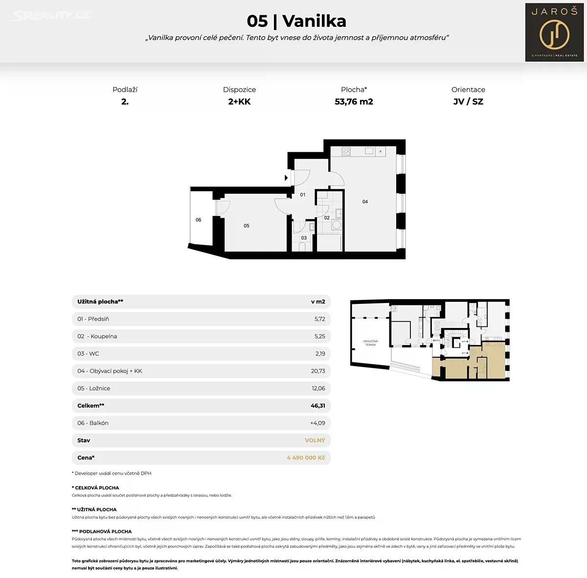 Nabízíme k prodeji moderní byt v osobním vlastnictví o dispozici 2+kk s celkovou výměrou 53,76 m². Byt se nachází ve 2.NP nově vznikajícího projektu Rezidence Stará pekárna v Jáchymově. Dispozice tohoto bytu 05 |,Vanilka“ zahrnuje vstupní chodbu, obývací pokoj s přípravou na kuchyňskou linku, koupelnu se sprchovým koutem a přípravou na pračku, samostatnou toaletu, ložnici a balkón. Byty jsou nabízeny ve vysokém standardu s důrazem na kvalitní materiály a moderní provedení (viz webové stránky projektu - standardy). Součástí bytu je také podíl na společných částech rezidence - vlastní wellness zázemí, lyžárna/kolárna a prostorná společná terasa pro posezení a grilování. Kolaudace projektu je plánována na 1. kvartál roku 2026. Širší výběr bytů a další informace naleznete na webových stránkách - rezidencestarapekarna cz Máte zájem o tento byt nebo vás zajímá více informací o celém projektu? Zavolejte mi, rád vám vše osobně představím. O projektu: Rezidence Stará pekárna je developerský projekt vznikající kompletní přestavbou historického domu v centru Jáchymova na místě původní pekárny. Nabízí celkem 11 bytů v nadstandardním provedení, které spojují moderní komfort a funkční řešení. Na každém podlaží se nachází pouze 2 až 3 byty, což zajišťuje dostatek soukromí a klid pro všechny obyvatele. Součástí rezidence je wellness, lyžárna, kolárna a společná terasa vhodná pro posezení a grilování, což zajišťuje pohodlí pro celoroční využití. V létě oceníte zázemí pro cyklistiku a turistiku, trailové tratě v oblíbeném Trail Parku Klínovec, v zimě pak blízkost sjezdovek a přímé napojení lanovkou na Klínovec. Projekt je atraktivní nejen pro ty, kdo hledají vlastní rekreační zázemí v horách, ale i pro investory - byty jsou ideální pro krátkodobé pronájmy díky lokalitě a možnosti celoročního využití. Lokalita Jáchymov je lázeňské město obklopené krásnou přírodou Krušných hor, které celoročně láká turisty i sportovce. V okolí najdete lyžařské areály včetně Klínovce s přímým napojením lanovkou, hustou síť turistických a cyklistických tras, oblíbený Trail Park Klínovec, historické památky i lázeňskou infrastrukturu. Díky tomu je město atraktivní pro rekreaci i investice do krátkodobých pronájmů.