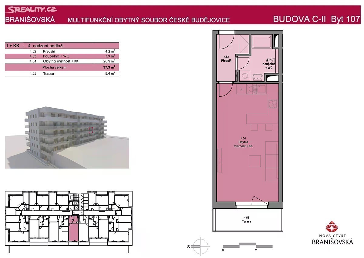Nabízíme k prodeji moderní byt 1+kk o výměře 37 m² + navíc s balkonem 5,5 m², který se nachází v nově zkolaudovaném bytovém projektu na Branišovské ulici v Českých Budějovicích. Byt je kompletně dokončen a připraven k okamžitému nastěhování. Součástí standardu jsou sádrové omítky, kvalitní koupelny, předokenní žaluzie a moderní provedení interiéru. K bytu je nutné dokoupit praktický sklep na patře + 145 000Kč a je možnost zakoupit parkovací garážové stání + 450 000Kč, což zajišťuje komfortní bydlení i dostatek úložného prostoru. Projekt nabízí atraktivní bydlení v blízkosti Jihočeské univerzity s výbornou dostupností do centra města i k přírodě. ✔️ Novostavba, ihned k nastěhování ✔️ Balkon 5,5 m² ✔️ Možnost parkování a sklepa ✔️ Moderní standardy vybavení
