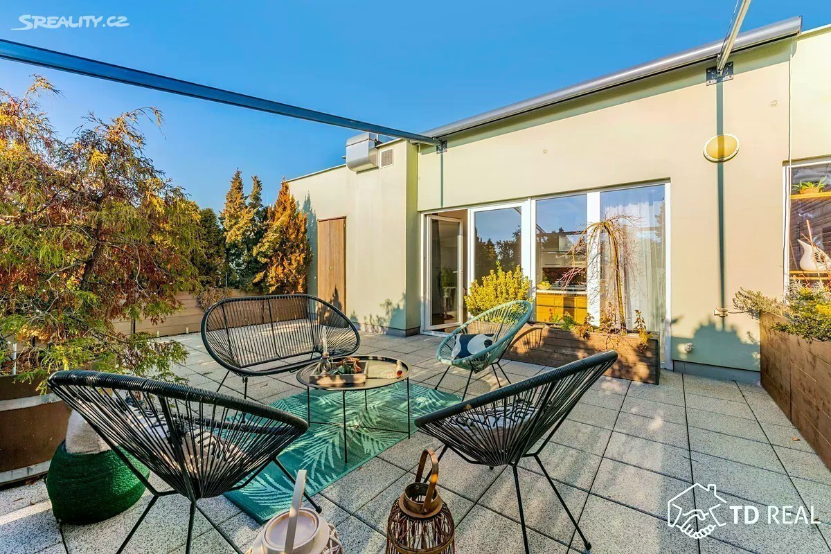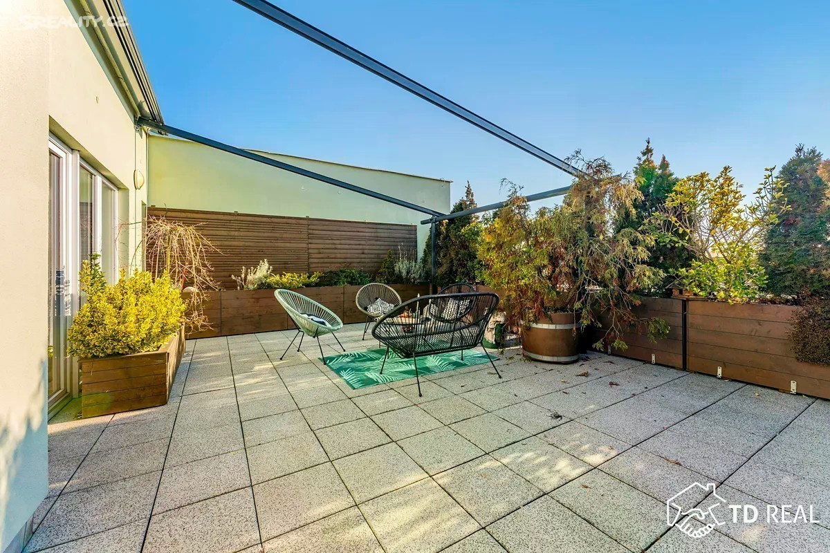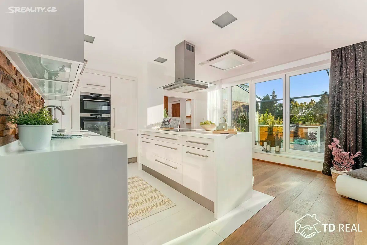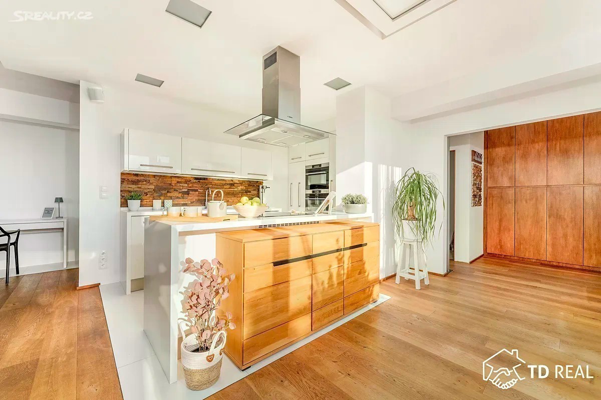 Atraktivní byt nyní 3+kk o celkové ploše 139 m2 v nejvyšším patře s terasou 47 m² a maximálním soukromím Jedná se o bytovou jednotku původně 4kk, nyní po úpravě majitelů je dispozice 3+kk byt o rozloze 92 m², jednoduchou příčkou a obložkovou zárubní s dveřmi se dá znovu získat původní dispozice dispozici 4kk. Tento byt se nachází v nejvyšším patře bytového domu, což zajišťuje nádherný výhled, soukromí a klid. K tomu navíc disponuje prostornou terasou o velikosti 47 m², která nabízí absolutní soukromí pro relaxaci i posezení s přáteli. Bytový dům má pouze čtyři nadzemní podlaží a na každém patře jsou pouze dva byty, což podtrhuje exkluzivitu tohoto bydlení. V domě nechybí výtah, který vás pohodlně dopraví přímo ke vstupu do bytu. Pro maximální komfort je možnost DOKOUPIT GARÁŽ v podzemním podlaží, což vám zajistí pohodlné a bezpečné parkování. Hlavním lákadlem tohoto bytu je velký slunný obývací pokoj s nádherným výhledem přímo na terasu. Moderní kuchyně je vybavena luxusní corianovou pracovní deskou a vestavěnými spotřebiči, které splní i ty nejnáročnější požadavky. V interiéru se dbalo na kvalitu - podlahy jsou masivní dubové, což dodává bytu nadčasový vzhled i příjemnou atmosféru. Pokud hledáte luxusní, slunné a soukromé bydlení ve skvělé lokalitě, tento byt vás určitě osloví. Zavolejte mi a domluvme si osobní prohlídku!