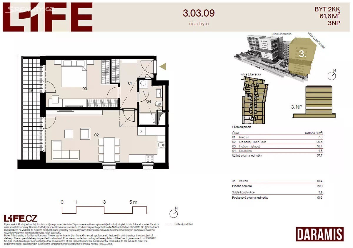 Nabízíme nadstandardně řešený byt o velikosti 2kk v novém projektu L1fe. Bezprostřední dostupnost metra Střížkov, veškerá občanská vybavenost a vysoký standard provedení zaručují, že projekt nabídne skvělou příležitost pro vlastní bydlení i investici. K bytu je nutno přikoupit parkovací stání a zděný sklep. Standardem v každém bytě je stropní vytápění a chlazení, nadstandartní obklady a dlažby, trojskla, lamino podlaha a centrální rekuperace. Výběr standartních obkladů, sanity, podlah a dveří pro tento byt byl proveden architektem.