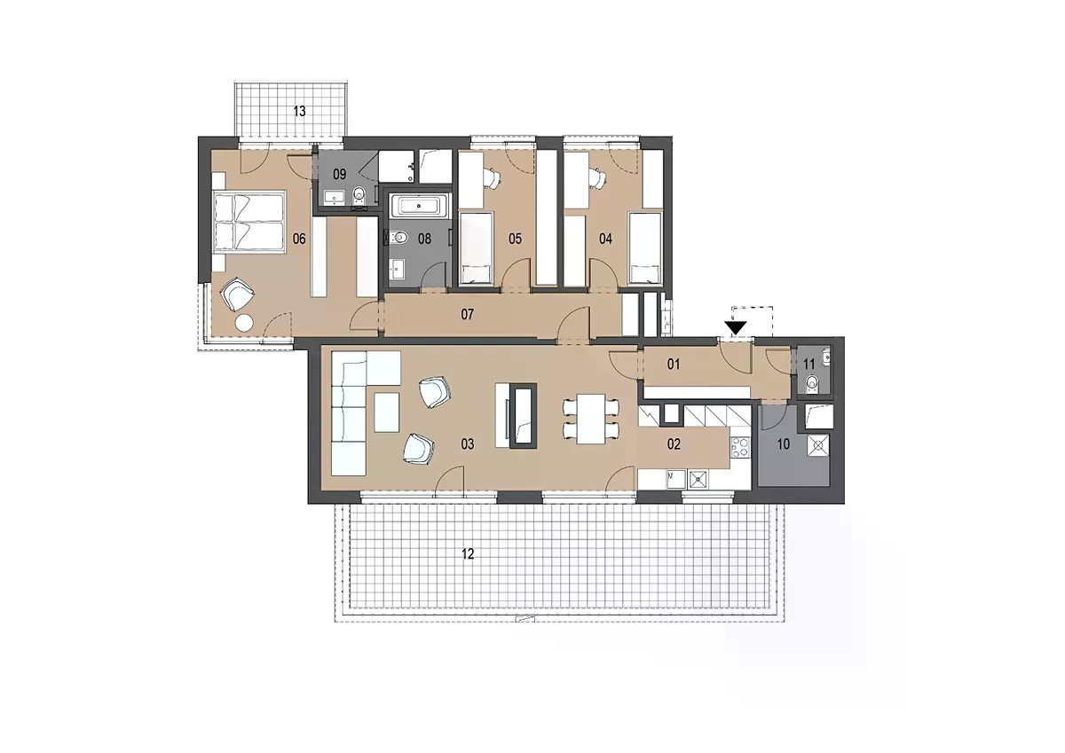 Byt 4+kk s terasou v novostavbě bytového domu - projekt Klamovka Five. Vynikající dostupnost centra města - Anděl 5 minut. Okna ložnic do klidné (neprůjezdné) části ulice Holečkova. Terasa jižním směrem k Plzeňské ulici. Možnost dokoupení dvou garážových stání v domě. Kvalitní provedení stavby a vnitřní vybavení standardem zahrnutým v ceně - např. okna zasklená trojskly, řízené větrání s rekuperačními jednotkami, bezpečností vstupní dveře do bytů, příprava pro klimatizaci, předokenní žaluzie, a mnoho dalšího. Velmi dobré odhlučnění od vnějšího prostředí. Sklepní kóje a komora jsou příslušenstvím, které je k bytu zdarma. V bytě v současné době nejsou instalovány podlahy, interiérové dveře a vybavení koupelen. Dokončení je zahrnuto v ceně. Může být uzpůsobeno požadavkům budoucího majitele, případně odečteno od kupní ceny. Díky umístění v nejvyšším podlaží domu (6.patro) jsou z bytu a ze slunné terasy pěkné výhledy. Doporučujeme prohlídku!