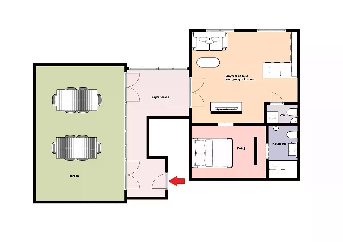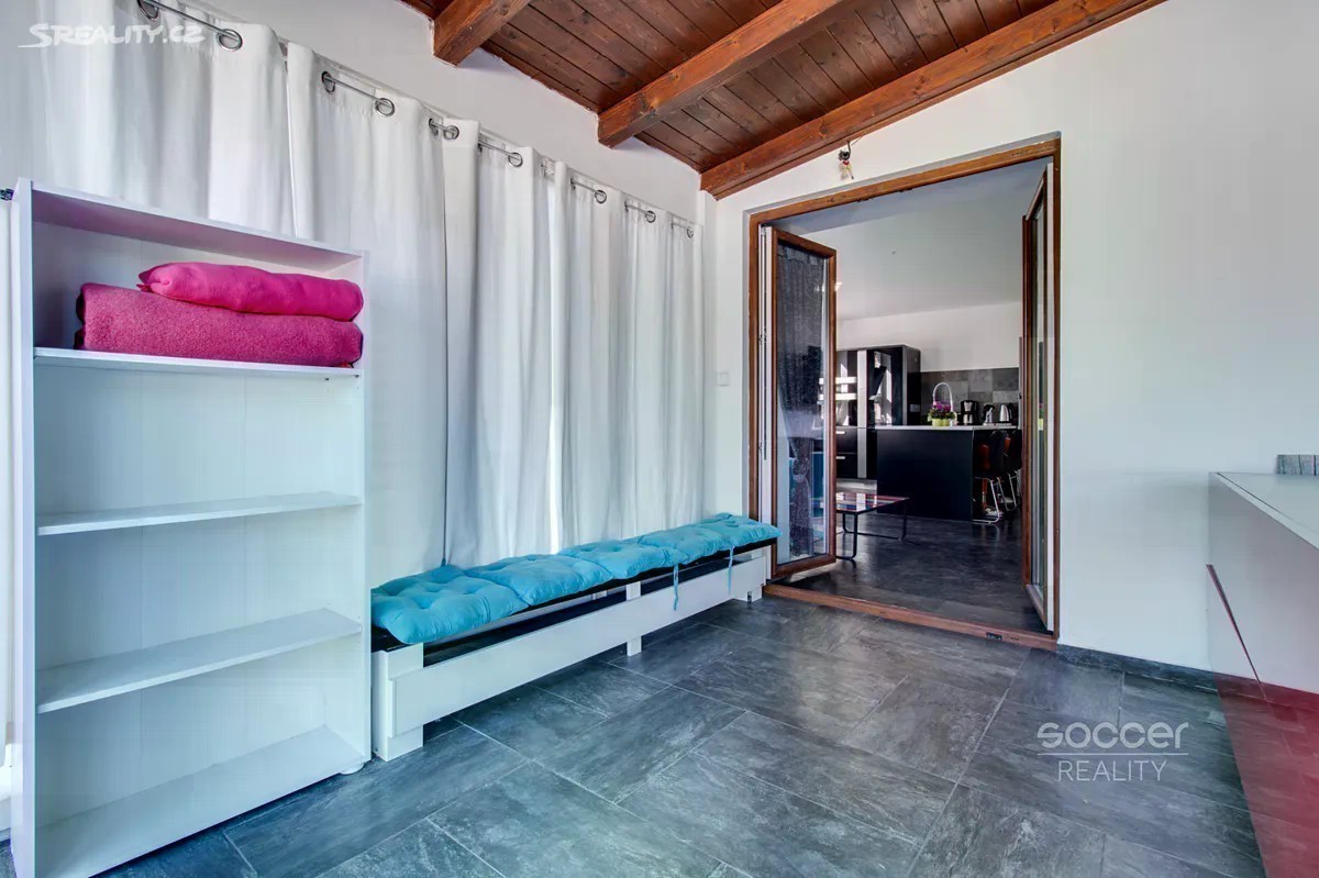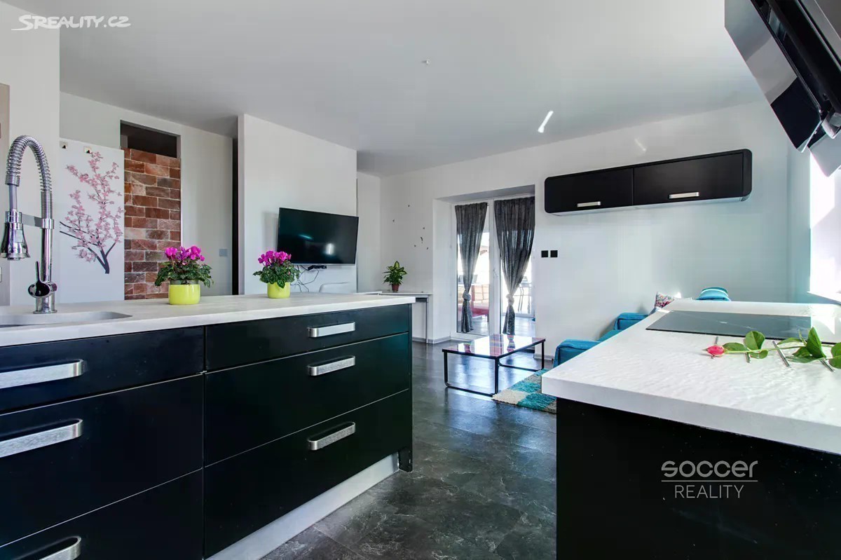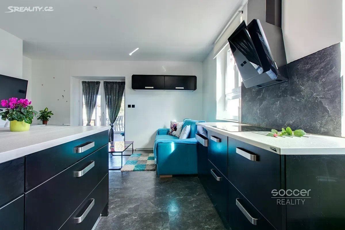Pronájem luxusního bytu 2+kk + terasa (celkem 83,8 m2), obec Vojkovice, okres Mělník. V okolí obce jsou romantické rozlehlé rovinaté louky vhodné pro procházky a cykloturistiku, v létě pak řeka na koupání nebo rybaření, prostě ideální místo pro rekreaci a bydlení. Byt se nachází v prvním patře (2. NP), velikost samotného bytu je 51,6 m2 + terasa 32,2 m2. Plánky bytu a terasy naleznete ve fotogalerii u inzerátu. Byt se pronajímá plně zařízený. Dispozice bytu: velký obývací pokoj 23,65 m2 s kuchyňským koutem, krásná kuchyňská linka je bohatě vybavena (kuchyňský ostrůvek s dřezem a myčkou, chladnička s mrazákem, indukční varná deska + vestavná horkovzdušná trouba, mikrovlnka a digestoř - vše od Gorenje). Dále je v bytě ložnice 10,26 m2, koupelna 4 m2 (masážním sprchový kout, umyvadlo, toaleta a pisoár) a samostatné WC (umyvadlo, toaleta a pračka). Na obývací pokoj navazuje krytá terasa 12,2 m2 a na ni terasa 32,2 m2, obě terasy jsou pouze pro byt. Ložnice a koupelna mají designové předstěny pro zaručené soukromí. V bytě jsou léčebné solné stěny, exotická dekorace, plná zdraví. Ohřev podlahového topení a teplou vodu zajišťuje plynový kotel. Parkovací stání je hned před domem. Do obce jezdí autobus. Veškerá občanská vybavenost je v nedalekém městě Veltrusy nebo Kralupy nad Vltavou. Praha - Letňany 17 min autem po dálnici D8. Byt je volný od 1.11.2025. Pronajímatel preferuje nájemníky bez zvířat. Pronajímatel si vyhrazuje právo vybrat nájemce na základě jím zvolených kritérií.