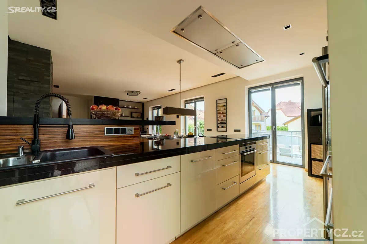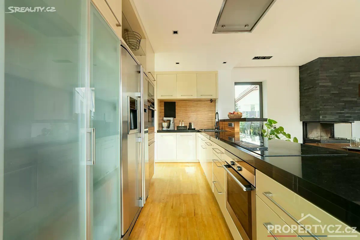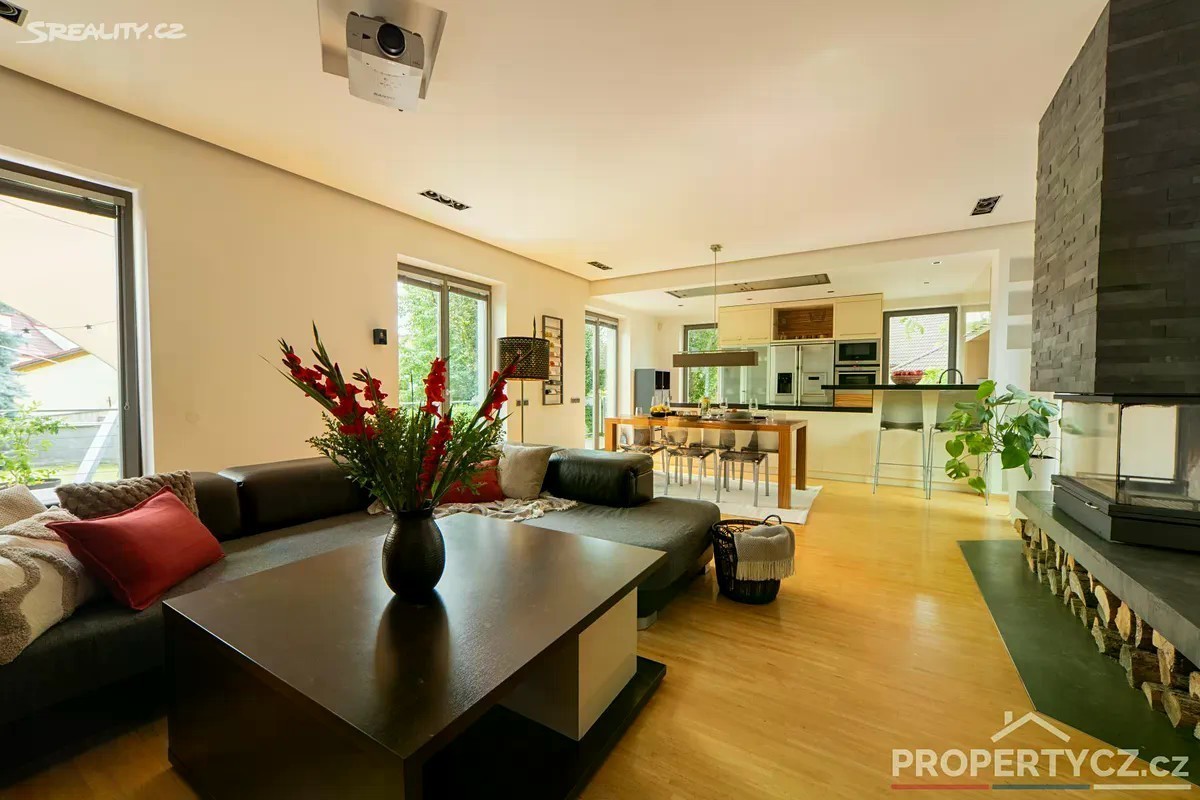 Nabízíme vám ke koupi tento nadčasový vícegenerační dům o dvou bytových jednotkách o dispozici a velikosti 4kk a 300m2 + 2kk a 45m2 s 2 garážemi a bohatým volnočasovým zázemím v klidné ulici na adrese Žďárská 750 a přesto kousek od všeho, co je potřeba ke kvalitnímu a spokojenému životu. Vlastní pozemek o 520m2 s prakticky založenou zahradou a okrasnými stromy, vzrostlým trávníkem a terasami vybízí k odpočinku a užívání si volného času. Domov je přístupný 2 samostatnými vjezdy s branou na dálkové ovládání, každý pak vede do samostatné dvou garáže. V levé se nachází dobíjecí elektrostanice, v pravé profi zvedák pro servis vozidel. Suchou nohou se dostanete z obou garáží kamkoliv v domě potřebujete, je totiž prakticky propojen centrálním vnitřním schodištěm, jež spojuje přízemí, první i druhé patro. Poutavým prvkem domu jsou hlavní vstupní dveře, kterými se přes zádveří dostanete buď do samostatné bytové jednotky o dispozici 2kk, kde naleznete obývák s kuchyní, koupelnu s vanou a samostatnou ložnici, nebo vás další příjemně poutavé dveře zavedou přímo do centra domu. Jeho srdce tvoří nadstandardně vybavený obývací pokoj s jídelnou a kuchyní. Prostor je orientovaný na jihovýchod a může se pochlubit akváriem, domácím kinem a krbem s teplovodní vložkou, je zde jídelna a větší kuchyňský kout vybavený všemi spotřebiči, kuchyňským ostrůvkem a barovým pultem. Zázemí zde zajišťuje koupelna se sprchovým koutem a toaletou a technická místnost. Pohodová terasa je přístupná z celého prostoru několika velkoformátovými okny, na ní můžete odpočívat ve stínu i na slunci, grilovat, nebo skočit do vířivky s protiproudem. Druhé patro tvoří obytná část a nacházejí se zde 3 pokoje, hlavní ložnice se šatnou, další 2 studentské či dětské pokoje s chytře řešeným patrem pro rozšíření prostoru, samostatná koupelna s vanou, sprchou a WC. V dalších prostorách přízemí domu naleznete saunu s ochlazovacím jezírkem a sprchou, toaletu, relaxační místnost, vinný sklípek, sklad pro uchovávání věcí a potravin a menší technická místnost na nářadí. Ze zázemí tohoto přízemí můžete rovnou vstoupit na zahradu. Stavba z roku 2005 nabízí moderní technologie pro úsporný provoz domácnosti. V celém domě je podlahové topení, solární panely pro termický ohřev vody, kamerový a zabezpečovací systém, venkovní centrálně ovládané žaluzie, velkoformátové interiérové dveře, na zahradě automatická závlaha, vířivka s ohřevem na vnitřní plynovou cirkulaci domu a spousta dalších užitečných vychytávek pro příjemný život. Dům se nachází v klidné ulici mezi rodinnými domy, obklopen zelení a fajn sousedy. Výhodu je výborná dostupnost do centra (15 minut), na metro Kobylisy (4 minuty), na dálnici D8 (5 minut), na letiště (30 minut). V blízkém okolí najdete mateřskou školku, potraviny, restaurace, DreamFit fitness. Probíhá zde rozvoj lokality, nové golfové hřiště Golf Club Dolní Chabry s klubovnou a restaurací, v plánu je také prodloužení tramvajové trati do Zdib s realizací do konce příštího roku. Chcete zde bydlet? Zavolejte mi a domluvíme spolu prohlídku.