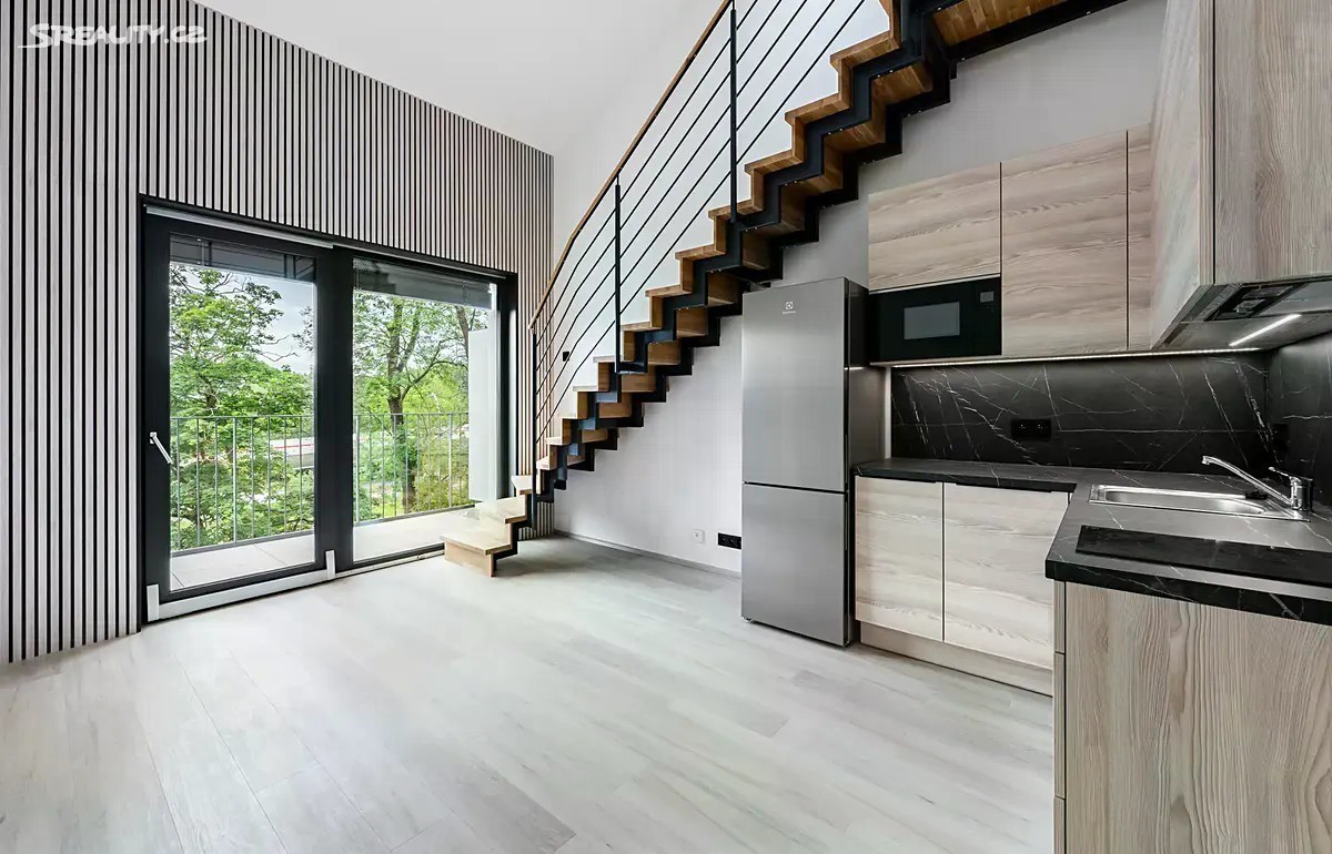 ID: Zlychov2kk K dlouhodobému pronájmu nabízíme zcela nový loftový byt 2+kk, který se nachází v nově vybudovaném rezidenčním projektu DUO Hlubočepy, v malebné přírodní oblasti Prokopského údolí (Praha 5 Hlubočepy). Tento moderní loftový byt 2+kk o celkové ploše 42 m2 se nachází ve 3. patře a náleží k němu balkon o velikosti 6m2 orientovaný do klidné části komplexu. V dolním patře se nachází prostorný obývací pokoj s nadstandardní vestavěnou kuchyňskou linkou a kvalitními spotřebiči (vestavná lednice s mrazákem, sklokeramická varná deska, myčka, trouba, digestoř). Horní patro nabízí samostatnou neprůchozí ložnici. Koupelna je vybavena sprchovým koutem, toaletou a pračkou. V předsíni je vestavěná šatní skříň. Byt se pronajímá částečně zařízený. Podlaha je vinylová, okna mají izolační trojsklo, vstupní dveře jsou bezpečnostní. Topení zajišťuje tepelné čerpadlo. V bytě je vodní podlahové topení s funkcí chlazení a systém řízeného větrání s rekuperací tepla. Parkovací stání a sklep je možné pronajmout za příplatek. Projekt DUO Hlubočepy tvoří dva novostavby s celkem 68 jednotkami. Součástí rezidence je soukromý park ve vnitrobloku a kamerový systém. Výborná dopravní dostupnost tramvajová zastávka Hlubočepy a stanice metra B Smíchovské nádraží a Anděl do 9 minut. V okolí se nachází kompletní občanská vybavenost OC Nový Smíchov, fitness centra, sportovní areály, příroda, školy a školky. Nájemné: 24 000 Kč Poplatky za energie: 3 099 Kč + elektřina se přepisuje Kauce: 48 000 Kč Provize: 27 099 Kč