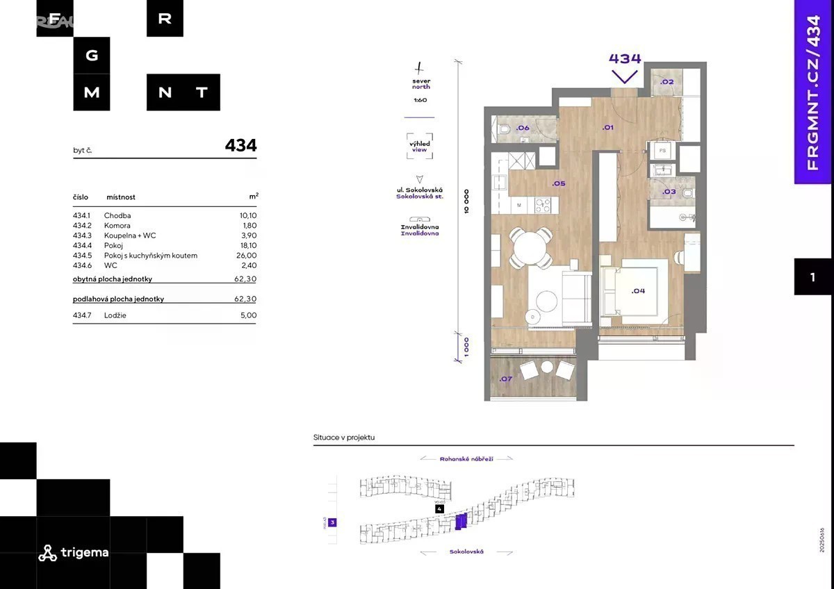 Nabízíme k dlouhodobému pronájmu kompletně zařízený moderní byt 2+kk situovaný ve 2. patře unikátního projektu Fragment v atraktivní lokalitě Praha Karlín. Dispozice bytu: Interiér tvoří obývák s jídelní částí a kuchyňskou linkou se spotřebiči, ložnice s postelí a úložnými prostory, koupelna se sprchovým koutem a toaletou, samostatná toaleta, komora a vstupní chodba. Vybavení a standardy: • Chytrá domácnost LOXONE • Vytápění a chlazení bytu skrze stropní podhledy • Vzduchotechnika s rekuperací • Variabilní osvětlení bytů • Velkoformátová okna • Venkovní rolety • Kvalitní dřevěné podlahy • Vestavěné skříně • Spotřebiče: pračka+sušička, myčka, indukční varná deska, digestoř, pečící trouba, mikrovlnná trouba, lednice + mrazák • Wellness WC s bidetovou sprškou • Internetové připojení Další informace: • Poplatky za služby a zálohy za energie se hradí zvlášť • Garážové stání k dispozici za poplatek 2 700 Kč / měs. + DPH • Sklepní kóje k dispozici za poplatek od 800 Kč / měs. + DPH • V budově je 24/7 recepce / ostraha, kamerový systém • Obchody a služby v budově - fitness centrum, kavárna, restaurace, drogerie, květinářství, kadeřnictví, zubní klinika, galerie Provize se neplatí. Dostupnost: K nastěhování od 1.12.2025.