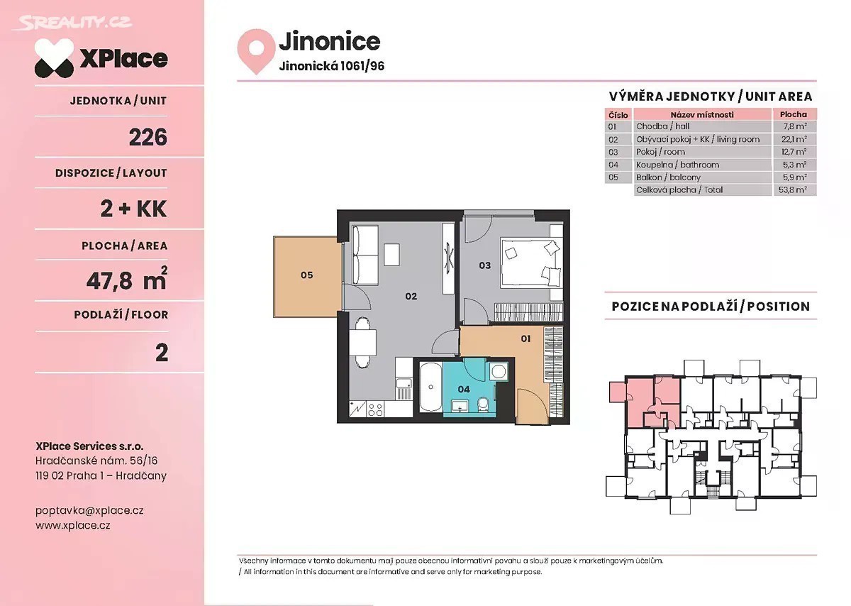 Pronájem bytu 2+kk 48 m² Jinonická, Praha - Jinonice