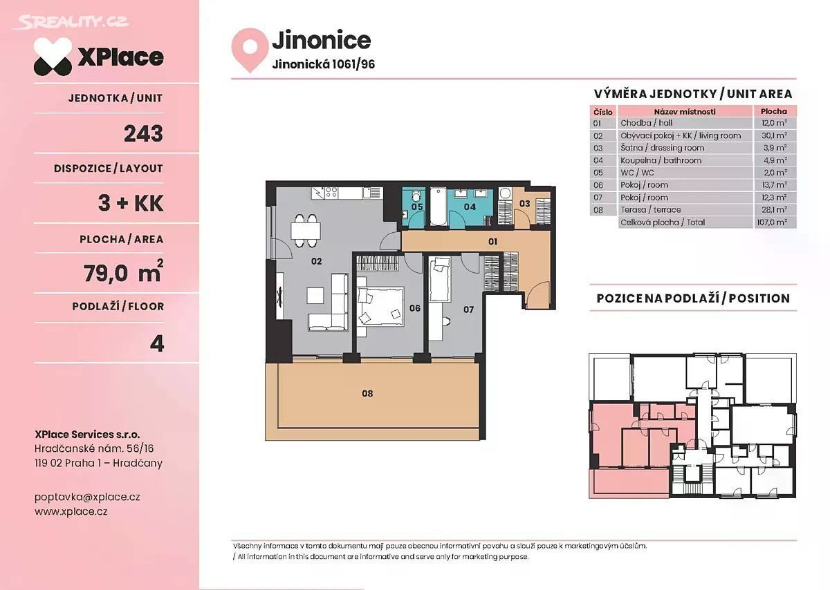 Pronájem bytu 3+kk 79 m² Jinonická, Praha - Jinonice