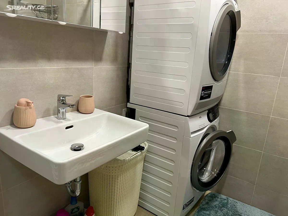 Pronájem moderního bytu 2+kk s balkonem v novostavbě Waltrovka - Praha 5,Jinonice Nabízíme k pronájmu krásný, světlý byt 2+kk o velikosti 56 m² s balkonem 6 m², situovaný v 5. patře novostavby v prestižní lokalitě Waltrovka - ulice Kačírkova, Praha 5 - Jinonice. Dispozice a vybavení: Obývací pokoj s rohovou sedačkou,jídelním stolem a pracovním koutem, navazující na moderní kuchyň s vestavěnými spotřebiči (trouba, varná deska, lednice, mikrovlnná trouba, digestoř). Samostatná ložnice s manželskou postelí a velkou šatní skříní. Koupelna se sprchovým koutem, umyvadlem, pračkou a sušičkou. Předsíň s úložným prostorem a botníkem. Prostorný balkon orientovaný do vnitrobloku se zelení. K bytu náleží sklep v suterénu domu. Další výhody: byt je plně vybavený a připravený k okamžitému nastěhování. Moderní design, kvalitní podlahy a vybavení. Možnost připojení k internetu, videotelefon, výtah v domě. Klidná a bezpečná lokalita. Lokalita: Rezidenční projekt Waltrovka nabízí skvělé zázemí včetně kaváren, restaurací, parků a obchodů. Výborná dopravní dostupnost - stanice metra B „Jinonice“ 5 minut pěšky, do centra jste za 10 minut. V okolí cyklostezky, sportoviště a široká občanská vybavenost.