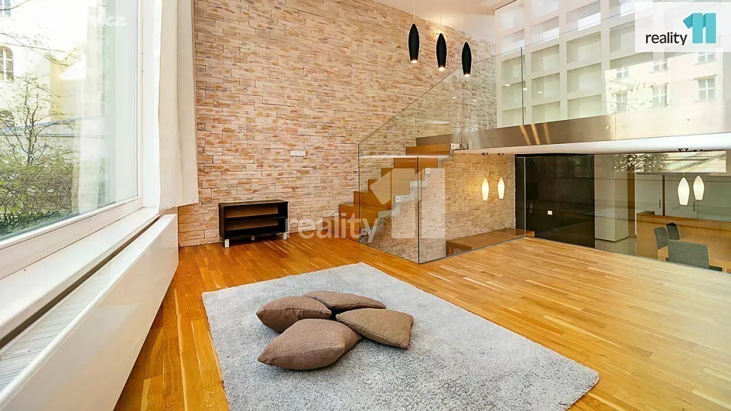 Hledáte moderní, slunný, designový byt, v centru Prahy? Nabízíme k pronájmu atypický byt 2+kk, umístěný v přízemí moderní rezidence Belwitz Palace. Byt, jehož obytná plocha je 103,52 m², je vícepodlažní. Po vstupu do bytu vejdeme do chodby, ze které se vchází do technické místnosti s pračkou, šatny a samostatné toalety. Dále se odtud vchází do kompletně zařízené kuchyně, s moderní kuchyňskou linkou, která je částečně skryta za posuvnými dveřmi, čímž vzniká krásný, čistý prostor s velkým jídelním stolem a pohovkou. Po několika schodech se dostaneme do obývacího pokoje, s velkým oknem, s výhledem do příjemného vnitrobloku. Odtud se pak opět po několika schodech vstupuje na galerii, která slouží jako ložnice, je zde další šatna a koupelna s vanou a toaletou. Celý byt je vzdušný, s dostatkem světla, důmyslně vytvořenými úložnými prostory a zajímavými prvky. Dům disponuje recepcí, k bytu je možné pronajmout garážové stání (do zakladače) za příplatek. Poloha je ideální, se skvělou dostupností do všech částí Prahy. Volné k nastěhování ihned, doporučujeme osobní prohlídku, ideální pro pár. Nájemné 38.500,-Kč/měsíc + zálohy na energie a služby v domě 8.000,-Kč/měsíc + elektřina na nájemce, kauce 77.000,-Kč. Ev. číslo: 25701.