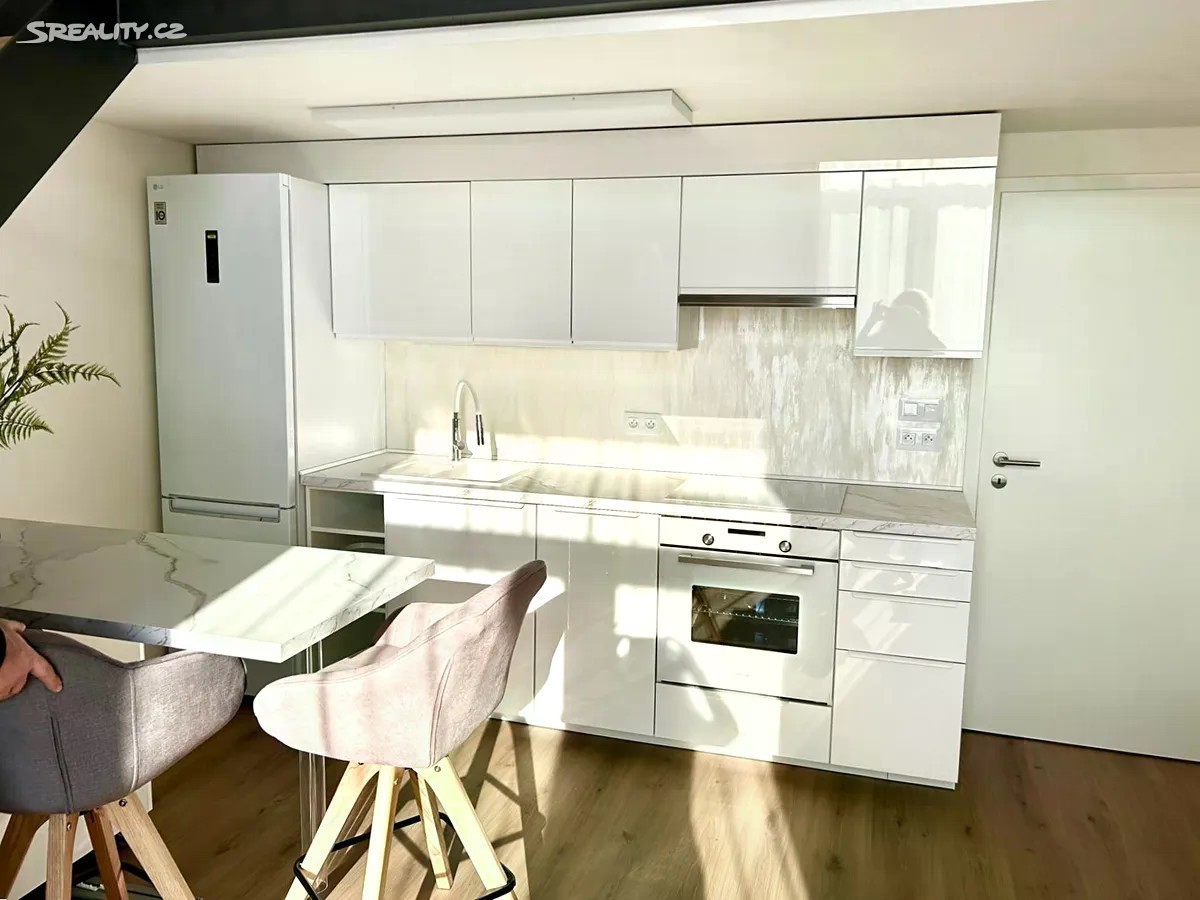 Nabízíme vám k pronájmu zcela nový luxusní loftový byt po celkové nákladné rekonstrukci v širším centrum Prahy - Vršovicích, Kubánském náměstí. Bytová jednotka o velikosti 55 m2 + balkón 8 m2 + sklep se nachází ve 2.NP a sestává ze vstupní chodby, velkého obývacího pokoje s kuchyňských koutem a vstupem na balkón, ložnice v patře a z prostorné koupelny se sprchových koutem. Byt je krásně slunný, kompletně zařízený novým designových nábytkem, kuchyňskou linkou, pračkou i televizí. Není třeba žádné další investice, stačí se pouze nastěhovat. Podlahové krytiny jsou dřevěné plovoucí podlahy a dlažby. Výška patra je 2,06 m. Výborná dostupnost do centra města, přímo na náměstí lze nakoupit jak v obchodech, tak sezónních trzích, v okolí množství parků a dalších volnočasových aktivit. Prohlídka možná ihned po předchozí telefonické domluvě.