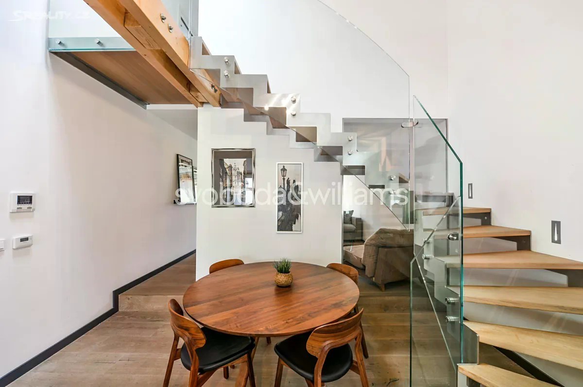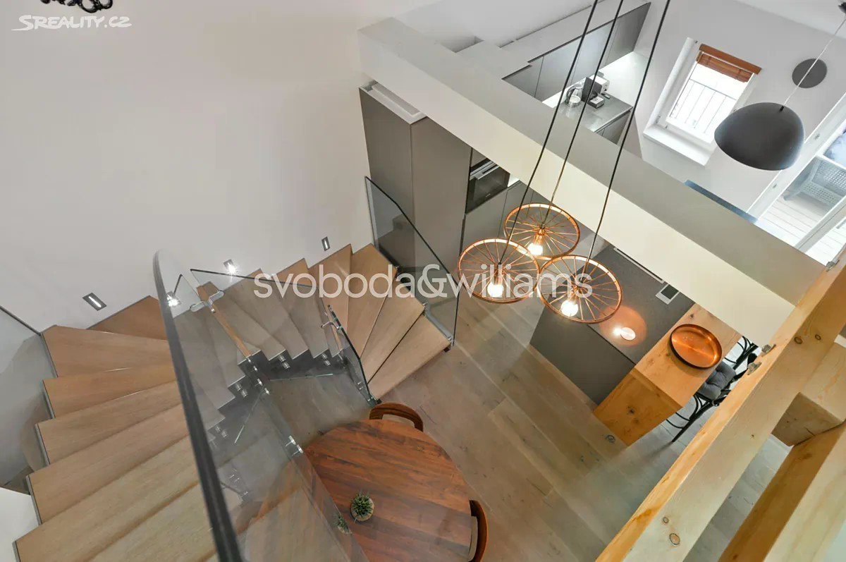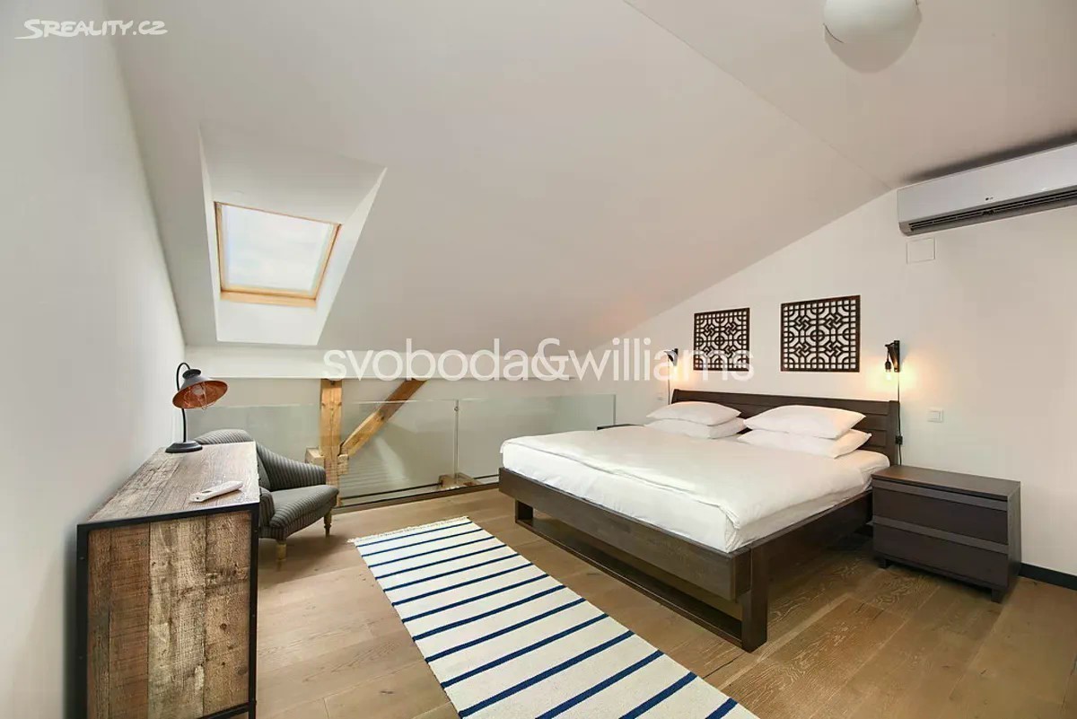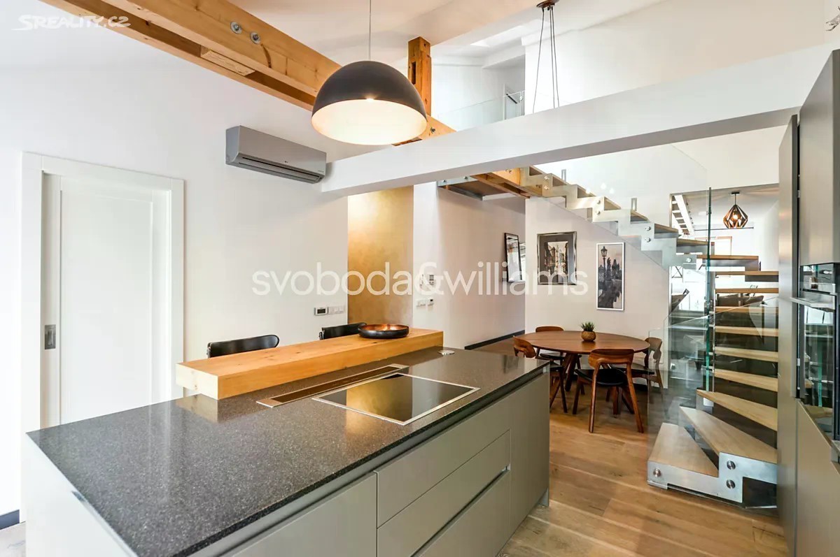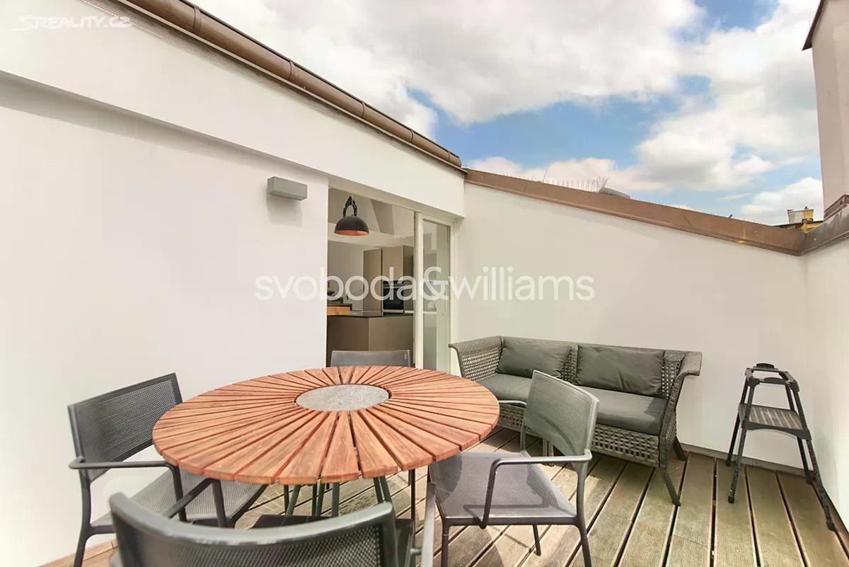 Nadstandardně zařízený klimatizovaný mezonetový byt s jižně orientovanou terasou v 6. a 7. nadzemním podlaží dobře udržovaného činžovního domu s výtahem na prestižní adrese v historické části Prahy, kousek od Staroměstského náměstí a Pařížské ulice. Dispozici 6. nadzemního podlaží tvoří obývací pokoj propojený s jídelnou a kuchyní s varným ostrůvkem, koupelna s toaletou a prádelnou a předsíň. Přepažením obývacího pokoje lze vytvořit dispozici 4+kk. Terasa je přístupná z kuchyně. V 7. podlaží jsou umístěny 2 ložnice a koupelna se sprchovým koutem a toaletou. Prostorný byt charakterizuje zachované dřevěné trámoví na stropech hlavních obytných místností a vysoce kvalitní materiály a vybavení: dřevěné třívrstvé podlahy z běleného dubu, klimatizace, elektricky ovládané žaluzie u střešních oken, kompletně zařízená kuchyňská linka na míru, v koupelnách obklady a dlažba Mosa (Terra, Beige), podlahové vytápění a zařizovací předměty Antonio Luppi. Vytápění zajišťuje vlastní plynový kotel Viessmann. Ulice V Kolkovně se nachází v samém srdci Starého Města, v jedné z nejprestižnějších a nejžádanějších lokalit metropole. Bezprostředně navazuje na Pařížskou ulici s butiky světových značek a jen několik kroků ji dělí od Staroměstského náměstí. V okolí se nachází široká občanská vybavenost - vyhlášené restaurace, kavárny, bary a galerie, ale také školy, zdravotnická zařízení, obchody a služby každodenní potřeby. Nedaleko se rozkládají Letenské sady, které jsou oblíbeným místem pro volnočasové aktivity. Výborné dopravní spojení zastřešuje stanice metra Staroměstská a několik tramvajových linek. Podlahová plocha 129,72 m2, terasa 10,1 m2.