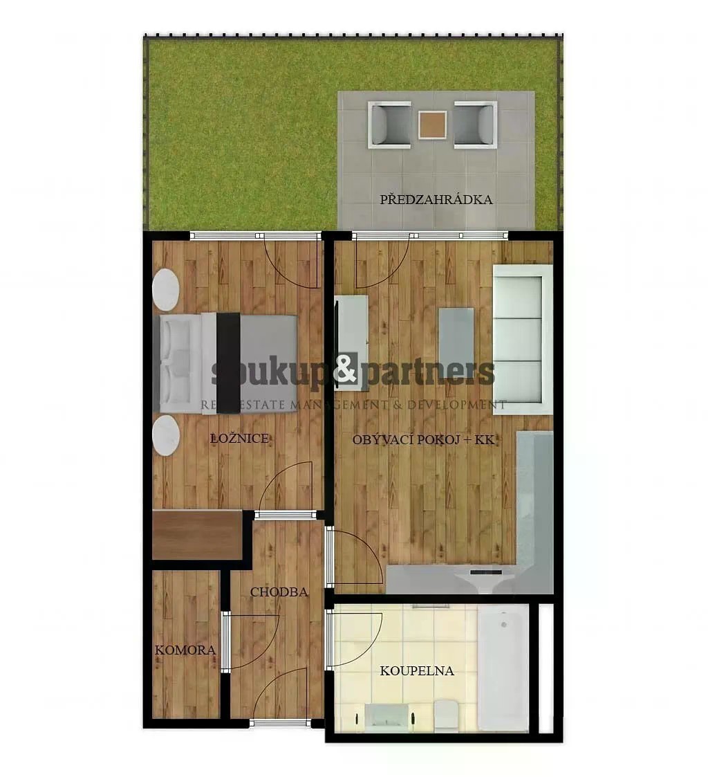 Prodej nového družstevního bytu 2+kk s předzahrádkou v moderní rezidenci Harfa Park - Praha 9. Dispozice: 2+kk Podlaží: 1. NP Plocha: 44,2 m² + předzahrádka 19,7 m² Orientace: sever Kolaudace: leden 2026 Standard bytu: Kompletně vybavená koupelna, interiérové dveře včetně obložek značky Sapelli, příprava na kuchyňskou linku a pračku, protipožární vstupní dveře, možnost dotace na podlahy ve výši 500 Kč/m². Financování: Platba při převodu bytu: 3.490.000 Kč (hradí se z vlastních zdrojů) Zůstatková anuita po kolaudaci: 4.456.000 Kč (splácí se formou měsíčních splátek) Anuita je splácena formou měsíčních splátek - bez nutnosti dokládat příjem, věk ani jiné podmínky. Úvěr je k bytu automaticky. Dvakrát ročně lze provést mimořádnou splátku, případně je možné celou anuitu kdykoliv doplatit z vlastních prostředků nebo refinancovat přes svou banku. Lokalita s kompletní občanskou vybaveností a skvělým dopravním spojením. Projekt Harfa Park se nachází v atraktivní části Prahy 9 - Vysočany, v ulici Pod Harfou. V bezprostřední blízkosti domu naleznete veškerou občanskou vybavenost - mateřské i základní školy, zdravotnická zařízení, lékárny, restaurace i menší obchody. Milovníky nakupování potěší, že jen 5 minut chůze od domu se nachází nákupní centrum Galerie Harfa nebo Galerie Fénix, kde kromě obchodů naleznete i širokou nabídku služeb, fitness centrum, multikino či restaurace. Skvělá dopravní dostupnost je samozřejmostí - v docházkové vzdálenosti se nachází tramvajové zastávky Podkovářská a Kabešova, stejně jako stanice metra B - Českomoravská. Do samotného centra Prahy se dostanete pohodlně do 25 minut. Pro motoristy je výhodou rychlé napojení na Jižní spojku i dálnice D10 a D11, které zajišťují plynulý výjezd z města všemi směry. Okolí je jako stvořené pro aktivní trávení volného času - přímo u domu začíná oblíbená cyklo a inline stezka, která vede podél říčky Rokytky z Podvinného mlýna až do přírodního parku Hrdlořezy. Trasa je ideální nejen pro cyklisty, ale i pro běžce, bruslaře nebo rodiny s kočárky. Další informace: - k bytu přísluší garážové stání a sklep za příplatek - vhodné jak pro vlastní bydlení, tak jako investice - vizualizace jsou ilustrativní, konkrétní podklady vám rádi zašleme na vyžádání Převod do OV nyní není možný, více podrobností Vám rádi sdělíme. V případě zájmu nás neváhejte kontaktovat.