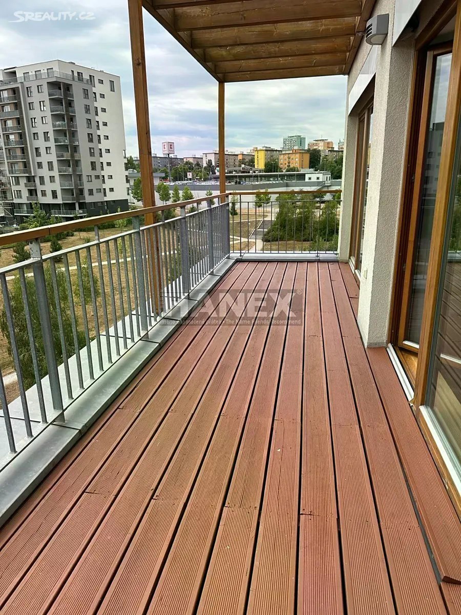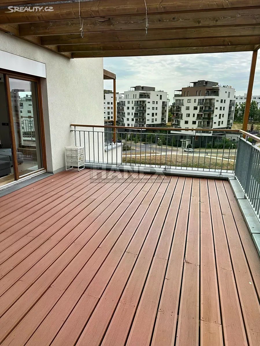 Nabízíme na prodej moderní byt v oblíbeném rezidenčním komplexu Zelené město na rozhraní Hrdlořez a Žižkova. Klidné prostředí se spoustou zeleně a s výborným dopravním spojením do centra. Prostorný a světlý byt 4+kk (130 m2) se třemi terasami se nachází v 5. patře. Interiér tvoří obývací pokoj s kuchyňským koutem (56 m2) a se vstupy na dvě terasy, hlavní ložnice s vlastní koupelnou (WC, sprcha, vana) a vstupem na třetí terasu. Druhá ložnice má také vstup na terasu a dále je zde další pokoj, který lze využít jako pracovnu/šatnu či dětský pokoj. Druhá koupelna s toaletou je přístupná z chodby, kde se nachází i praktická komora s prostorem pro pračku a sušičku. Plně vybavená kuchyňská linka s vestavěnými spotřebiči a ostrůvkem na vaření. Byt nabízí nadstandardní množství úložných prostor. Na největší terase je instalována markýza a na všech oknech jsou screenové rolety. Orientace bytu na tři světové strany. Vyhledávaná lokalita v blízkosti několika parků a přírodní rezervace pro volnočasové aktivity. Pár kroků od projektu je Kaufland a zastávka autobusů a tramvají. Cena zahrnuje 2 parkovací stání, sklep a vybavení bytu.