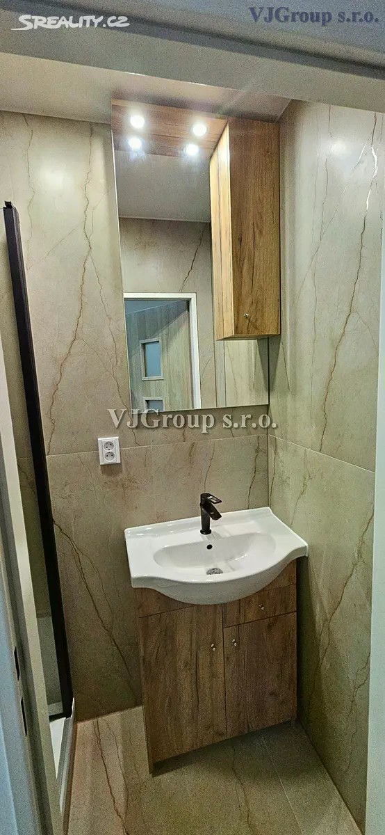 Nabízíme Vám k prodeji kompletně zrekonstruovaný byt v osobním vlastnictví o dispozici 3+1 + 2 koupelny + komora + lodžie a dále s k bytu přináležejícími komorou na chodbě domu (1,15 m x 0,80 m) a úložným boxem na chodbě domu (1,4 m výška; 0,85 m šířka; hloubka 1,3 m) nacházející se v lukrativní a žádané lokalitě města Bílina, v ulici Za Chlumem. Byt je situován ve 2. nadzemním podlaží udržovaného panelového domu o celkem 4 nadzemních podlažích. Dispozičně se jedná o byt o celkové výměře 65 m² (bez výměr lodžie, komory na chodbě domu a boxu na chodbě domu), který sestává ze vstupního zádveří-předsíně (6,4 m²), obývacího pokoje (17,2 m²), kuchyně (7,6 m²) osazené kuchyňskou linkou a obklady (instalovány přívody a vývody alternativně pro pračku či myčku), plynovým sporákem s elektrickou troubou (vše nové), dále dvou samostatně oddělených ložnic (12,6 m² a 14,5 m²), přičemž k jedné z nich přiléhá částečně zasklená lodžie (4 m²), dále koupelny se sprchovým koutem (1,4 m²), dále koupelny s vanou a s WC (3 m²) a vnitřní bytové komory (2,2 m²). Byt je ve stavu po právě dokončené kompletní rekonstrukci, během níž bylo nově vyzděno bytové jádro, nově byly osazeny veškeré vybavovací prvky bytu včetně interiérových i vstupních dveří, vybudovány a osazeny vybavovacími prvky obě koupelny a provedeny veškeré vodovodní a odpadní rozvody. Nově byly též provedeny veškeré podlahové plochy bytu (vinylová podlahová „click“ krytina, v koupelnách pak dlažba), obklady, vypínače, zásuvky, osvětlovací prvky vč. rozvaděče a bytové pojistkové skříně. Bytová okna včetně dveří na lodžii jsou plastová a jsou osazena vnitřními žaluziemi. Byt je částečně vybaven i záclonami. Do bytu je zavedena domovní internetová datová linka a v prostoru za oknem obývacího pokoje je osazen přijímač satelitního signálu s přívodem signálu do bytu. V domě je též rozvedena společná televizní anténa (STA). Byt je částečně vybavený bytovým zařízením a cena veškerého bytového zařízení patrného na fotografiích je zahrnuta v celkové ceně bytu. Na bytě nevázne žádné právní břemeno, a je tedy možno byt použít k případnému ručení úvěrového krytí kupujícího. Společné prostory domu jsou osazeny plastovými okny. Na domě bylo před deseti lety provedeno kompletní zateplení fasády domu a proběhla i výměna vodovodních a odpadních rozvodů za plastové. Energetická náročnost domu je klasifikována klasifikační třídou energetické náročnosti C. Značnou výhodou lokality nabízeného bytu je jednak velmi dobrá dopravní dostupnost do centra města a jednak blízká dochozí vzdálenost do lesní přírodní lokality vrchu Chlum (nadm. výška 295 m) s oblíbeným místem pro rekreační vyžití „Discgolf Bílina“ a s vyhlídkovým místem. V bližší lokalitě bytu se pak nachází např. dětská školka, městská knihovna, několik dětských hřišť, supermarkety, prodejny potravin, pizzerie, restaurace apod. Zastávka MHD se nachází v přímé dochozí vzdálenosti 150 m od domu. Samotné město Bílina pak disponuje výbornou úrovní občanské vybavenosti (školy, školky, zdravotní středisko, pošta, dětské hřiště, obchody, parkoviště, lékárna, sportovní fotbalový a hokejový klub atd.).