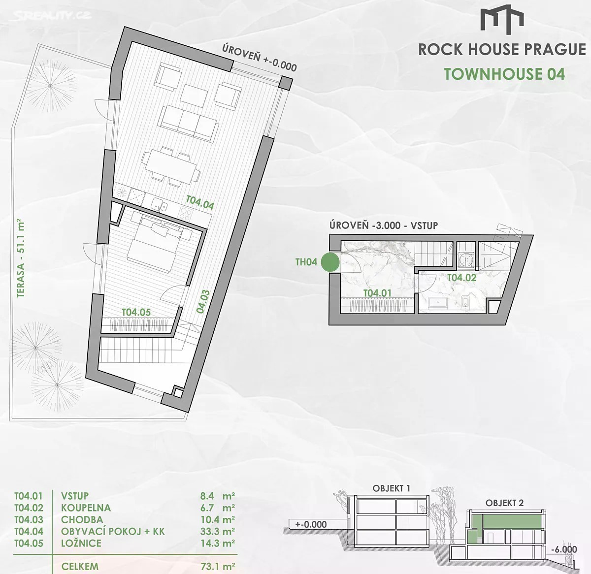 K prodeji nabízím mezonetové bytové jednotky typu townhouse, každá se samostatným vstupem, v nově vznikajících viladomech projektu Rock House Prague. Bytové jednotky mají dispozice od 2+kk do 3+kk s plochou v rozmezí 73 m² až 119 m². Ke každé jednotce náleží terasa nebo zahrada. Projekt je situován v unikátní lokalitě Prahy 5 - Hlubočepy, v bezprostřední blízkosti přírodní rezervace Prokopské údolí. Díky poloze na mírně svažitém terénu nabízí ničím nerušené výhledy do zeleně a na skalní masiv. Celý areál je obklopen nízkopodlažní rezidenční zástavbou, která zajišťuje klidné a příjemné prostředí. Komplex tvoří dva třípodlažní viladomy se šesti atypickými jednotkami, navržené renomovaným architektonickým studiem. Fasády v puristickém pojetí, velkoformátová okna a originální architektonické prvky dávají projektu moderní a nadčasový charakter. Součástí areálu jsou zatravněné plochy a zeleň určená k odpočinku. Projekt je koncipován jako nízkoenergetický. Bytové jednotky se prodávají v provedení White Walls - dokončená hrubá stavba s omítkami, podlahovým topením a připravenými rozvody. Klient má možnost dokončení interiéru podle vlastních představ. Technologie a vybavení - vytápění a ohřev vody zajištěny tepelnými čerpadly vzduch-voda ve společné kotelně - v bytech teplovodní podlahové topení + elektrické žebříky v koupelnách - každá jednotka má vlastní měření a regulaci Termíny - hrubá stavba dokončena - kolaudace plánována na 1. čtvrtletí 2026 Lokalita - přímý kontakt s přírodou: Prokopské údolí, Červený lom, Chuchelský háj - ideální na procházky, cykloturistiku i relaxaci - výborná dopravní dostupnost - zastávka MHD přímo u domu, autem rychlé spojení přes Barrandovskou radiálu na Městský okruh - kompletní občanská vybavenost v okolí K bytovým jednotkám je možné dokoupit sklep a parkovací stání. Při uzavření kupní smlouvy do konce roku získáte od developera jako bonus návrh interiéru a realizaci kuchyně na míru. Rock House Prague spojuje komfort městského života s klidem přírody. Objevte jedinečnou lokalitu a kontaktujte mě ještě dnes - ráda Vám projekt osobně představím.