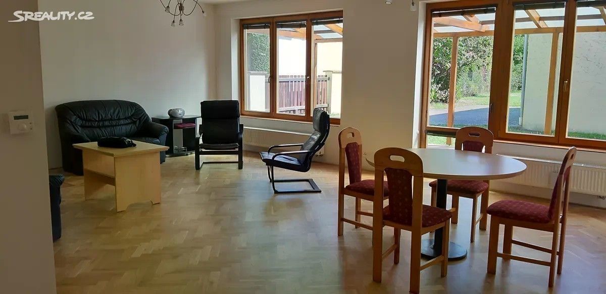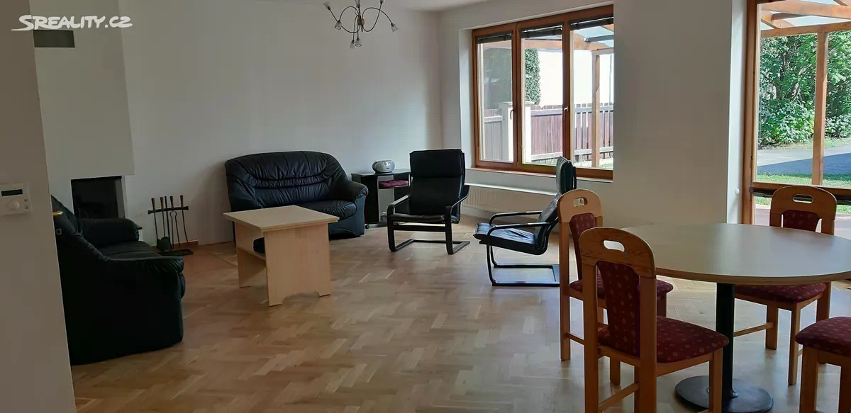 Pronajmeme zděný dvoupodlažní dům s prostornou zastřešenou terasou a s troj garáží a s pozemkem 921 m2 v Praze 4 Písnici. Dům je ve velmi dobrém stavu a poskytuje velmi pohodlné bydlení. Ve všech obytných místnostech jsou dubové parkety, hala a chodba přízemí dlažba. Hala v patře parkety. Okna i dveře v celém domě zakázková výroba - masivní dřevo. Schodiště masivní dřevo - zakázková výroba. V přízemí domu je prostorný obývací pokoj s krbem propojený s kuchyní, kuchyňská linka s vestavěnými spotřebiči, sklokeramická deska, myčka, dvě polyfunkční trouby, lednička s mrazákem, z obýváku je vstup na prostornou zastřešenou terasu. V přízemí je dále pracovna se vstupem na terasu, koupelna se sprchovým koutem a s WC, v přízemí je dále samostatné WC s umývadlem, zrcadlem. Vstup do patra je z haly v přízemí. V patře jsou tři prostorné ložnice, šatna, samostatné WC, plynový kotel, prostorná koupelna s rohovou vanou, dvěma umývadly a s WC. Dům je vybaven centrálním vysavačem a alarmem, v celém domě rozvody pro počítač. Samostatný objekt stojící v zahradě o výměře 80 m2 je rozdělený na dvě části, možno využívat jak pro garáž, sklad, atd. Před domem a před troj garáží zpevněna plocha pro parkování. Vjezdová vrata, dvoje garážová vrata - vše na dálkové ovládání. V prostorné zahradě jsou ovocné stromy, třešeň, několik druhů švestek, broskvoň, dále ořech, hroznové víno, bylinky. Dům je napojený na všechny inženýrské sítě plyn, elektro, kanalizace a má vlastní studnu. Dům je nachází v blízkosti nájezdu na Pražský okruh, Cholupický tunel, rychlý nájezd na dálnice zejména na Strakonickou D4 a na Letiště Václava Havla. Jedná se o lokalitu přímo u přírodního parku Modřanská rokle, lokalitu s dobrou občanskou vybaveností a v blízkosti dvou anglických škol a několika anglických školek a v blízkosti největší Vietnamské tržnice v ČR. Jde o velmi perspektivní lokalitu. Nedaleko domu je plánovaná stanice Metra trasa D. Dům je ideální jak pro bydlení, tak pro sídlo firmy.