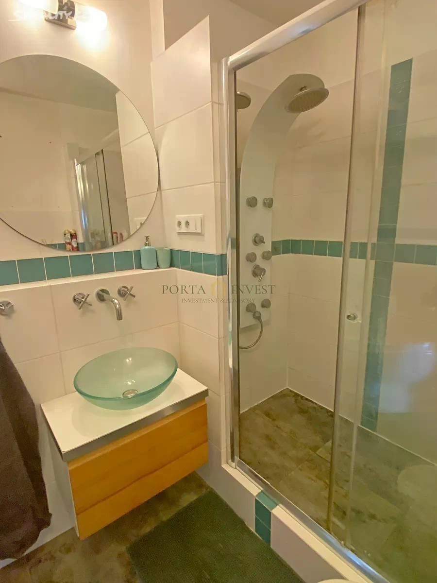 Nabízíme k pronájmu krásný, nápaditě zrekonstruovaný byt 2+kk 47 m2 s lodžií a nádherným výhledem na celou Prahu, v Praze 8 Troji, Krynické ulici. Nachází se v 9. patře udržovaného a rekonstruovaného panelového domu s novým výtahem. Byt tvoří vstupní chodba s velkou vestavnou skříní, která spolu s dvěma prostornými komorami (s pračkou) poskytuje dostatek úložných prostor a zázemí. Obývací pokoj se vstupem na lodžii má plně vybavený moderní kuchyňský kout s barovým posezením (indukční varná deska, lednice s mrazákem, myčka) a menší obývací stěnu. Další pokoj (ložnice) je vybaven komodami. Nadstandartní koupelna s WC disponuje rohovou vanou i masážním sprchovým koutem. Podlahy bytu pokývá kvalitní kamenná dlažba a dřevěná plovoucí podlaha. Prostorná jižně orientovaná lodžie s osvětlením a el. zásuvkou nabízí vedle výjimečného výhledu na celou Prahu mnoho variant relaxace, od běžného slunění až po večerní grilování. Lokalita s veškerou občanskou vybaveností (Albert, OC Krakov, poliklinika, školy, školky) i řadou příležitostí pro rekreaci (cyklostezky, ZOO, Botanická zahrada). Velmi dobré dopravní spojení (Metro C Kobylisy 7 min busem, zastávka 150m od domu). Ideální bydlení pro jednotlivce nebo pár bez domácích zvířat. K dispozici ihned.