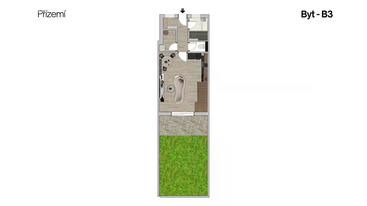 K prodeji novostavba bytu 2+kk s předzahrádkou a vyhrazeným parkováním před domem, a to vše v komorním rezidenčním projektu, který vznikne v ulici Blanická poblíž centra města Svitavy. Jedná se o mezonetový byt s celkovou plochou 59,13 m2. Denní zónu bytu tvoří otevřený prostor s kuchyní, jídelnou a obývacím pokojem. Součástí je také předsíň, technická místnost, koupelna a samostatná toaleta. Z přízemí je schodištěm zajištěno propojení s klidovou částí bytu v podkroví - ložnicí s ochozem, díky kterému je celý prostor bytu otevřený, vzdušný a světlý. Jedním z benefitů je předzahrádka o výměře 19,06 m2, která poskytne novým majitelům skvělé místo pro relaxaci nebo grilování. Vytápění a ohřev vody zajišťuje centrální plynový kotel. Projekt jednopodlažního domu s obytným podkrovím zahrnuje pouze 4 bytové jednotky s vlastním vchodem. Termín dokončení je naplánován na léto 2026. Dispozice bytu: - obývací pokoj s kuchyňským koutem a jídelnou: 24,17 m2 - předsíň: 4,70 m2 - technická místnost: 2,73 m2 - koupelna: 3,54 m2 - toaleta: 1,61 m2 - ložnice v patře: 22,38 m2 - předzahrádka: 19,06 m2 Energetická náročnost budovy: B úsporný provoz domácnosti.