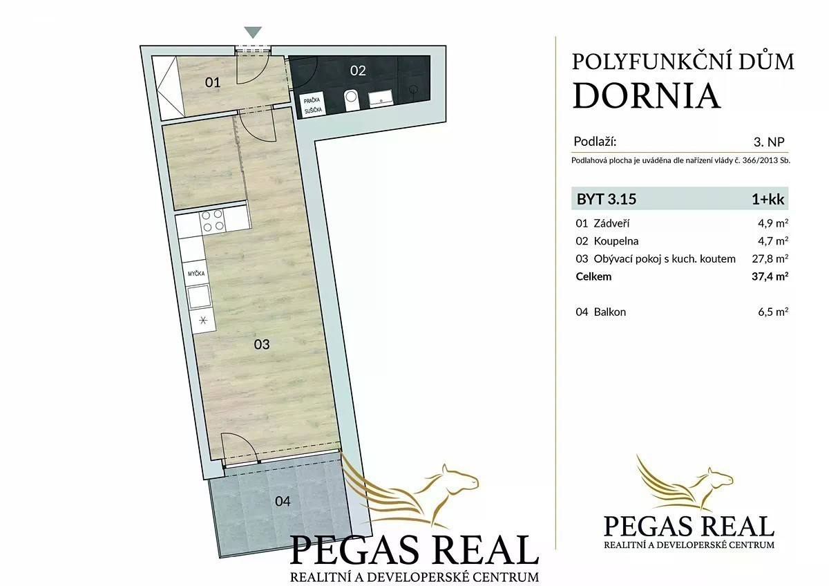 Zkolaudováno! Podívejte se náš vzorový byt jak na fotografiích, ve 3D scanu tak osobně. Ideální investiční příležitost k pronájmu! Centrum Brna, přitom klidný vnitroblok! Veškerá občanská vybavenost na dosah ruky! Jednotka nacházející se v novostavbě polyfunkčního domu! K dispozici parkování! Nabízím k prodeji bytu, který je umístěn v novostavbě polyfunkčního domu DORNIA, ve dvorním traktu ul. Dornych. Dům disponuje 6ti nadzemními a jedním podzemním podlažím. Orientace domu je východ - západ, což zajišťuje bohatou prosluněnost veškerých jednotek. Tato jednotka je orientována na západ. Strategická poloha tohoto projektu je ideální příležitostí k pořízení investiční nemovitosti. V dochází vzdálenosti je centrum města, OC Vaňkovka a bezpočet společnosti zaměstnávající velké množství pracujících, což je ideální příležitost možných pronájmů za velmi výhodné ceny. Nabízený byt se nachází ve 3NP domu. K jednotce náleží prostorná terasa s výměrou 6,5m2, která Vám poskytne dostatečný prostor k příjemnému posezení i výrazně rozšíří užitnou plochu. Byt je velmi prakticky a funkčně řešen. Ze zádveří vstoupíte do koupeny se sprchovým koutem a toaletou a do obytné části s prostorem pro kuchyňský kout. Na obytnou část navazuje prostorná terasa. Plocha bytu 37,4 m2 + terasa 6,5 m2. V objektu je realizováno 122 bytů a ateliérů s dispozičním řešením 1KK - 2KK. Většina jednotek disponuje terasou. Možné dokoupení sklení kóje. Jednotka i celý projekt polyfunkčního domu jsou provedeny ve vysokém standardu. V domě je k dispozici výtah. Dům je dokončen. Postup při koupi: - po podpisu Rezervační smlouvy, úhrada rezervační zálohy - podpis Smlouvy o smlouvě budoucí - úhrada kupní, ceny, podpis Kupní smlouvy - po úhradě kupní ceny a podpisu Kupní smlouvy dochází k převodu vlastnického práva na Katastru nemovitosti s následným fyzickým předáním jednotky kupujícímu Možno financovat hypotečním úvěrem. S financováním Vám velmi rádi pomůžeme. V případě investičního záměru Vám zajistíme vhodného nájemníka. Měsíční výnos z nájmu 16.000Kč + náklady na služby. Jednotka může být v případě zájmu předána kompletně vybavená nábytkem. Cena sklepní kóje 100.000,- Kč. Jsem přesvědčen, že Vás tato ojedinělá nabídka bytů a ateliérů osloví. Velmi rád se Vámi setkám osobně a můžeme společně probrat podrobnosti celého projetu a detaily dalších nabízených jednotek projektu DORNIA.