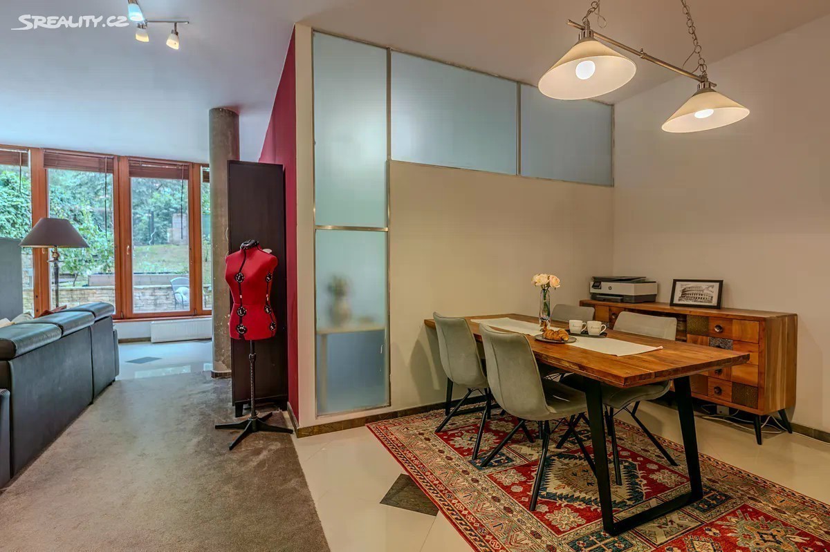 Originální přízemní byt 4+kk se zahradou a terasou - soukromí v srdci Prahy 10 Hledáte prostorné, moderní a originální bydlení, kde budete mít vlastní kus zeleně, naprosté soukromí a město na dosah? Takový je byt 4+kk s celkovou užitnou plochou 144 m² a soukromou zahradou s terasou (179 m² navíc) v klidné části Prahy 10. Hlavní výhody bytu: - jižní orientace - samostatný vstup z vnitrobloku - parkování přímo na pozemku - osvětlené schodiště od branky k bytu - terasa 26 m² se soukromím díky vzrostlým stromům - zahrada celkem 163 m² - velkorysý obývací pokoj spojený s kuchyní a jídelnou (60+ m²) - krb a podlahové vytápění pro maximální komfort - kvalitní použité materiály - voda přivedena na terasu - příprava elektřiny pro automatickou bránu - skvělá dostupnost MHD (tramvaj v pěší vzdálenosti, blízkost metra A) - kompletní občanská vybavenost a parky v okolí Prostor, který jinde nenajdete: Dominantou bytu je velkorysý obývací pokoj spojený s jídelnou a kuchyňským koutem. Celý prostor je prosvětlen velkoformátovými okny s výhledem na zahradu s terasou, která je přístupná i dveřmi z ložnice. Kuchyně zaujme kamennými deskami a originálním provedením se zrcadly, které prostor opticky zvětšují. Za kuchyní jsou dva další pokoje, praktická komora a koupelna. Vytápění bytu je řešeno podlahovým topením a radiátory. Zahrada, kde zapomenete, že jste v Praze: Oplocený pozemek nabízí celkem 179 m² (82 m² v osobní vlastnictví a 97 m² v dlouhodobém pronájmu od Hl. m.). Díky vzrostlým stromům a situováním pozemku do vnitrobloku poskytuje terasa se zahradou naprosté soukromí. Najdete zde prostor jak pro relaxaci, tak pro pěstitelské aktivity. Pro pohodlnou údržbu je na terasu zavedena voda. U brány je připravena elektřina pro instalaci automatického pohonu brány na dálkové ovládání. Lokalita: Kounická ulice, Praha 10 - klid a dostupnost v jednom Byt se nachází v oblíbené a klidné rezidenční části Prahy 10 - Strašnice. Perfektní dopravní dostupnost - v blízkosti tramvaje, autobusy i metro (Skalka, Strašnická). Občanská vybavenost - školy, školky, obchody, lékaři i sportoviště v pěší dostupnosti. Zeleň a odpočinek - nedaleko Malešický park, Gutovka či Park Na Solidaritě. Jedná se o lokalitu ideální pro rodiny s dětmi i pro každého, kdo hledá spojení městského komfortu s klidným bydlením uprostřed zeleně. Ozvěte se, pokud chcete víc než jen byt - chcete domov s atmosférou.